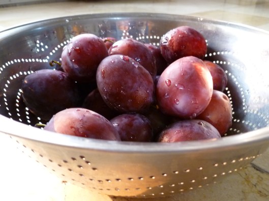 • Plums, quetsch are traditional, but not mandatory–and using other varieties will make a good tart, too.  For this 14 ” round tart, I used about 20 quetsch plums.