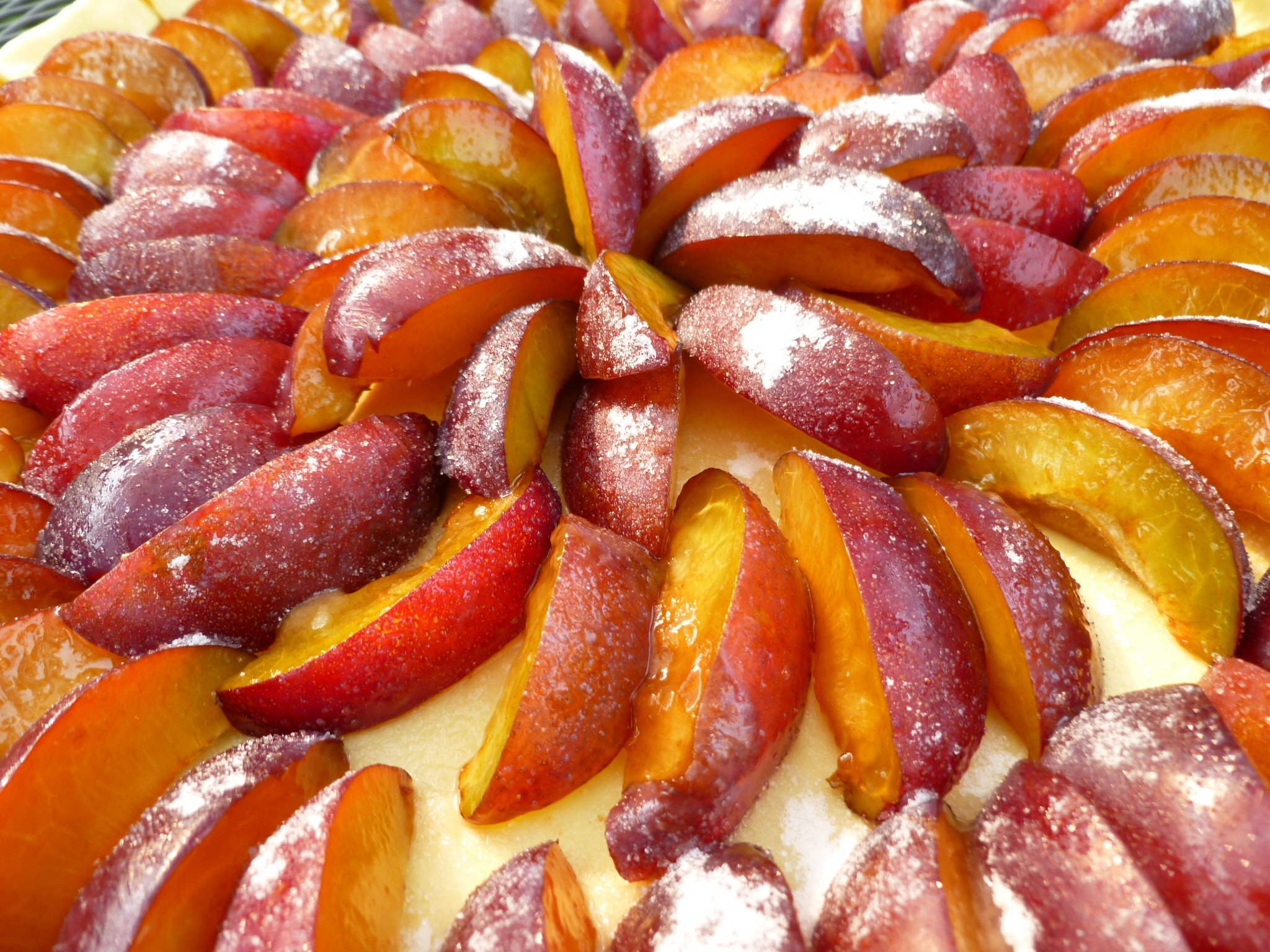 See the diplomatickitchen’s update to this recipe here— describing another technique for baking a Swiss Plum Tart or any Swiss fruit tart which will ensure that the tart’s crust crisps and does not become soggy as the fruit cooks and releases its juices.  This new method is illustrated using fresh apricots in place of plumsKnowing how to make one Swiss fruit tart means that you actually know how to make many different ones.  It is simply a matter of substituting one fruit for another.