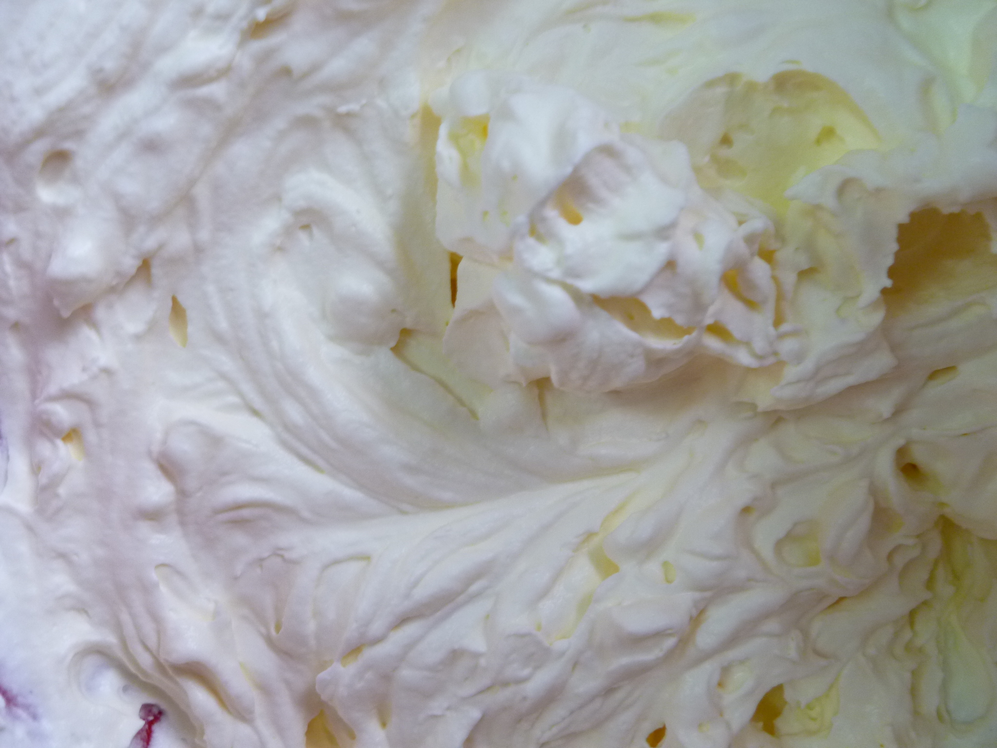 3. The whipped cream may also be prepared in advance. Whip the two cups of heavy cream until it begins to form soft peaks. Gradually add about 1/4 cup of powdered sugar as it continues to whip, more if you like it sweeter. Continue to mix the cream until it forms stiff peaks. (If you continue to beat it beyond this point, you will get butter.) Tilt the bowl of cream upside down, and the cream should not slide down the sides of the bowl. Cover it and refrigerate it: