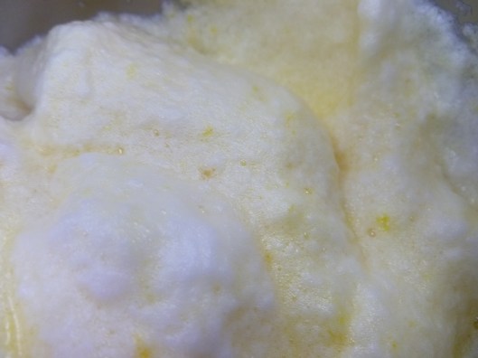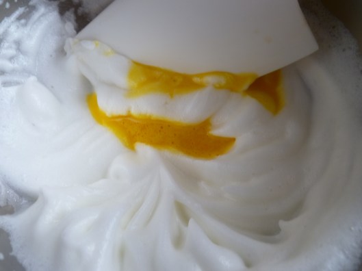 5. When the yolks and whites are folded together, the mixture will look like pale yellow foam: