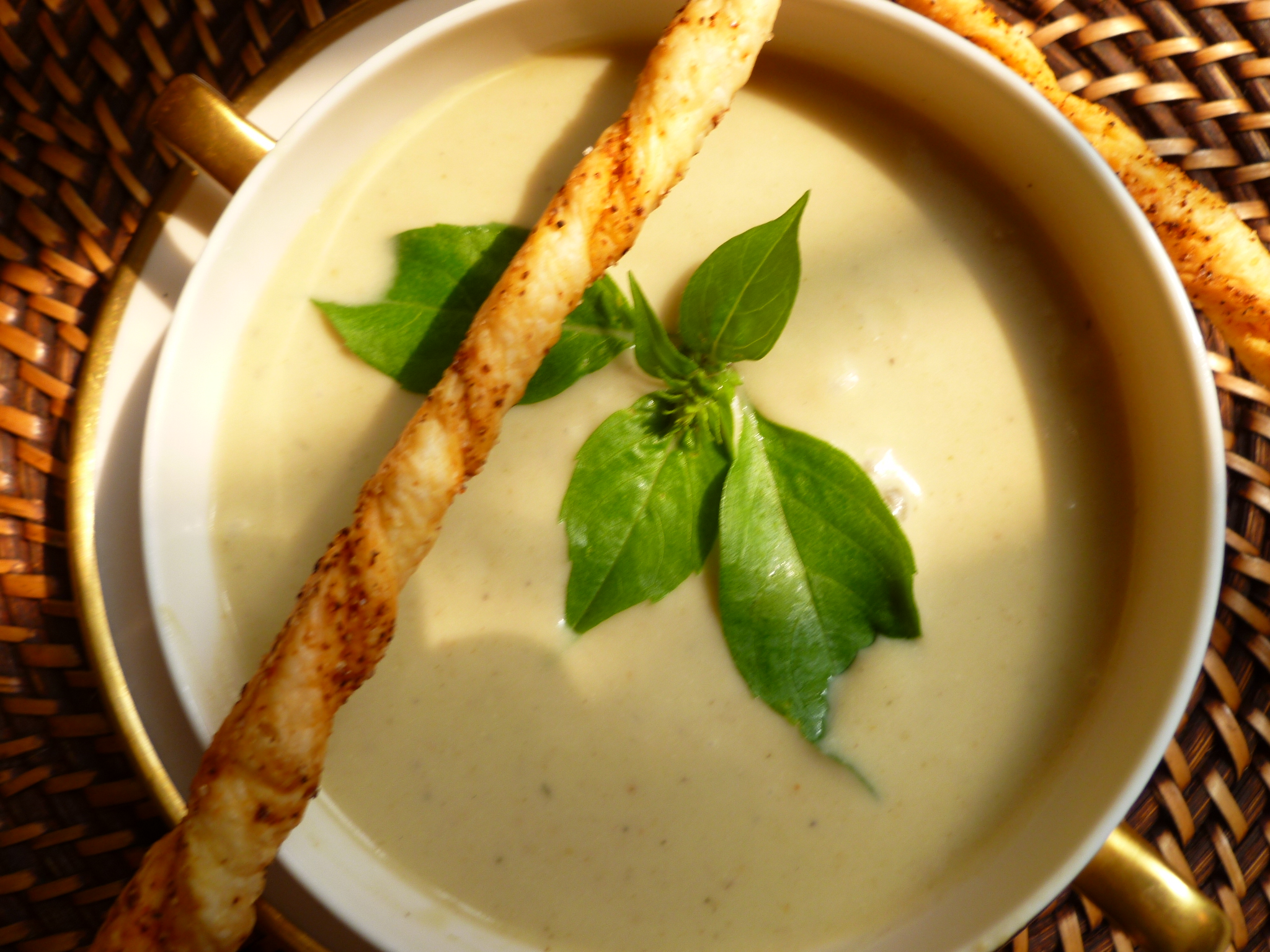 …and Grissini accompany Cream of Eggplant Soup ~ Brennan’s of Dallas in the Dinner Menu: A Welcome Dinner for an Out-of-Town Visitor who has Traveled Far: