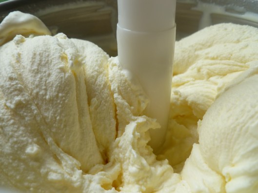 3. Pour the ice cream mixture in your machine and freeze it according to the directions for that maker. Finished ice cream, ready to store in the freezer, looks like this: