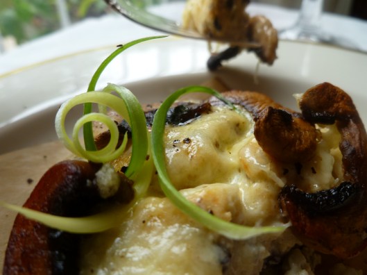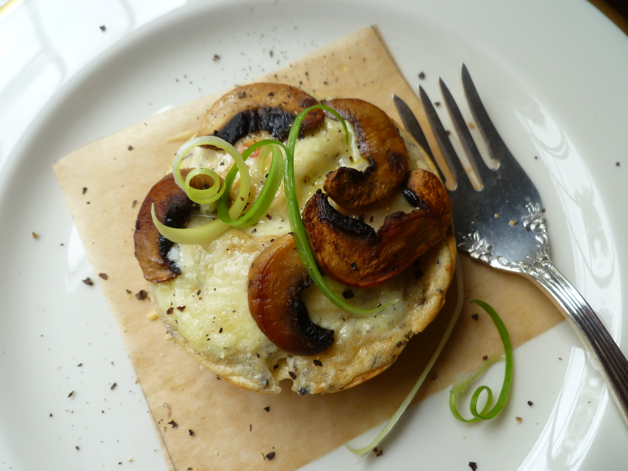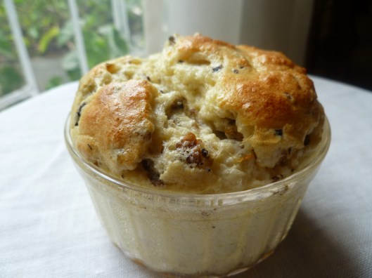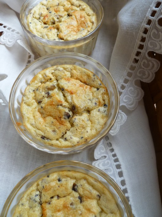 Unless you do not like mushrooms, there is no down side to these little souffles. Generally, souffles are finicky–these are not. This makes them an excellent first course, requiring no split-second timing or serving. They are reliable, but not at all boring, small and delicious. A glass of Kir Royale with them (or Champagne for those who don’t like the flavour of the blackcurrant liqueur, Creme de Cassis) is a nice idea on a special occasion.