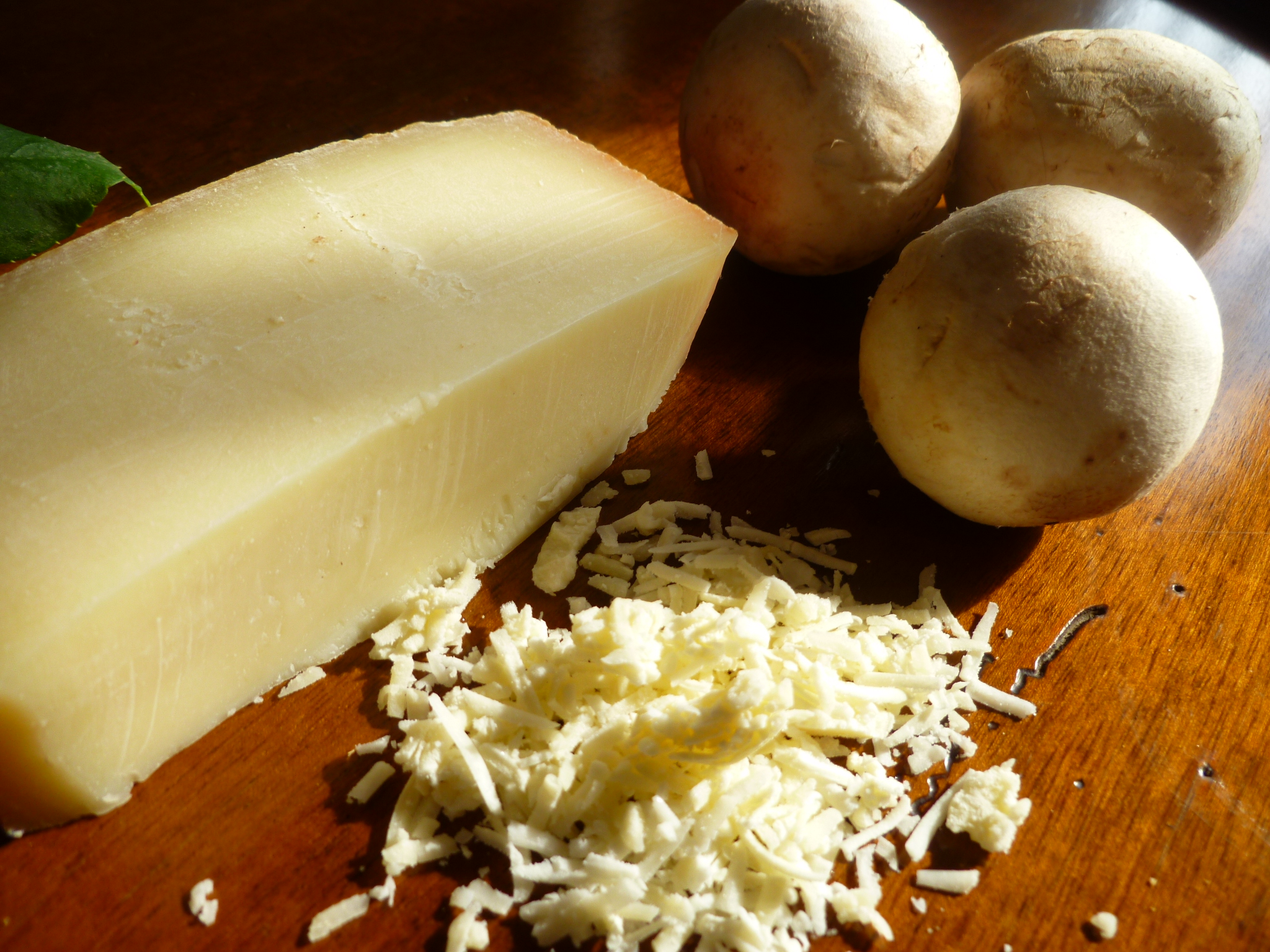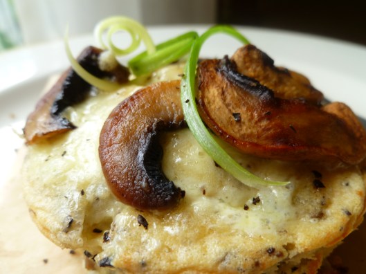 - 5 ounces of button mushrooms, coarsely chopped, and a couple of extra ounces, sliced, for arranging on the tops of the souffles
