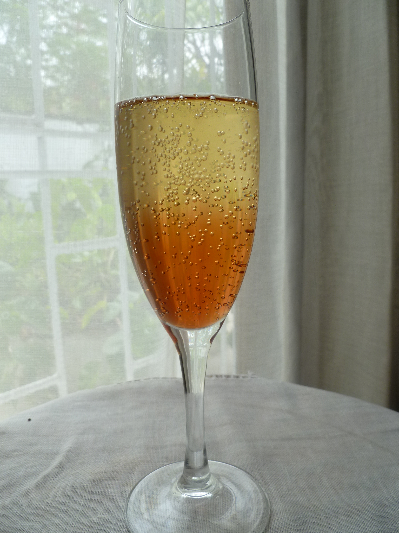 1. To a glass of Champagne, add 1 teaspoon of Creme de Cassis. A regular Kir is also very good: substitute white wine for the Champagne. Reversing the order and pouring the wine in the glass after the liqueur will not change the taste, but the drink will not have the pretty two-toned hue.