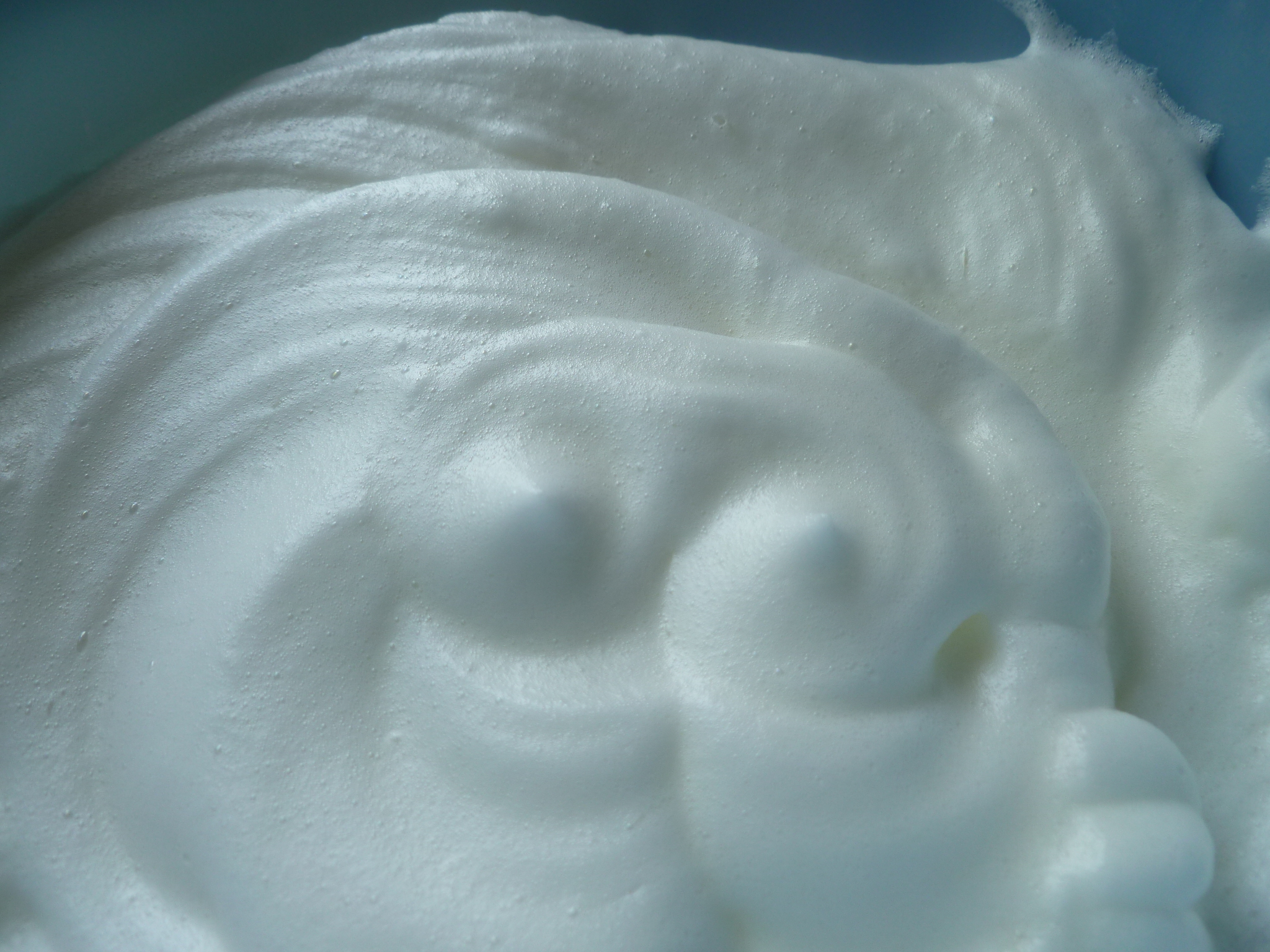 3. Beat the egg whites until they are stiff and don’t slide up the side of a tilted bowl: