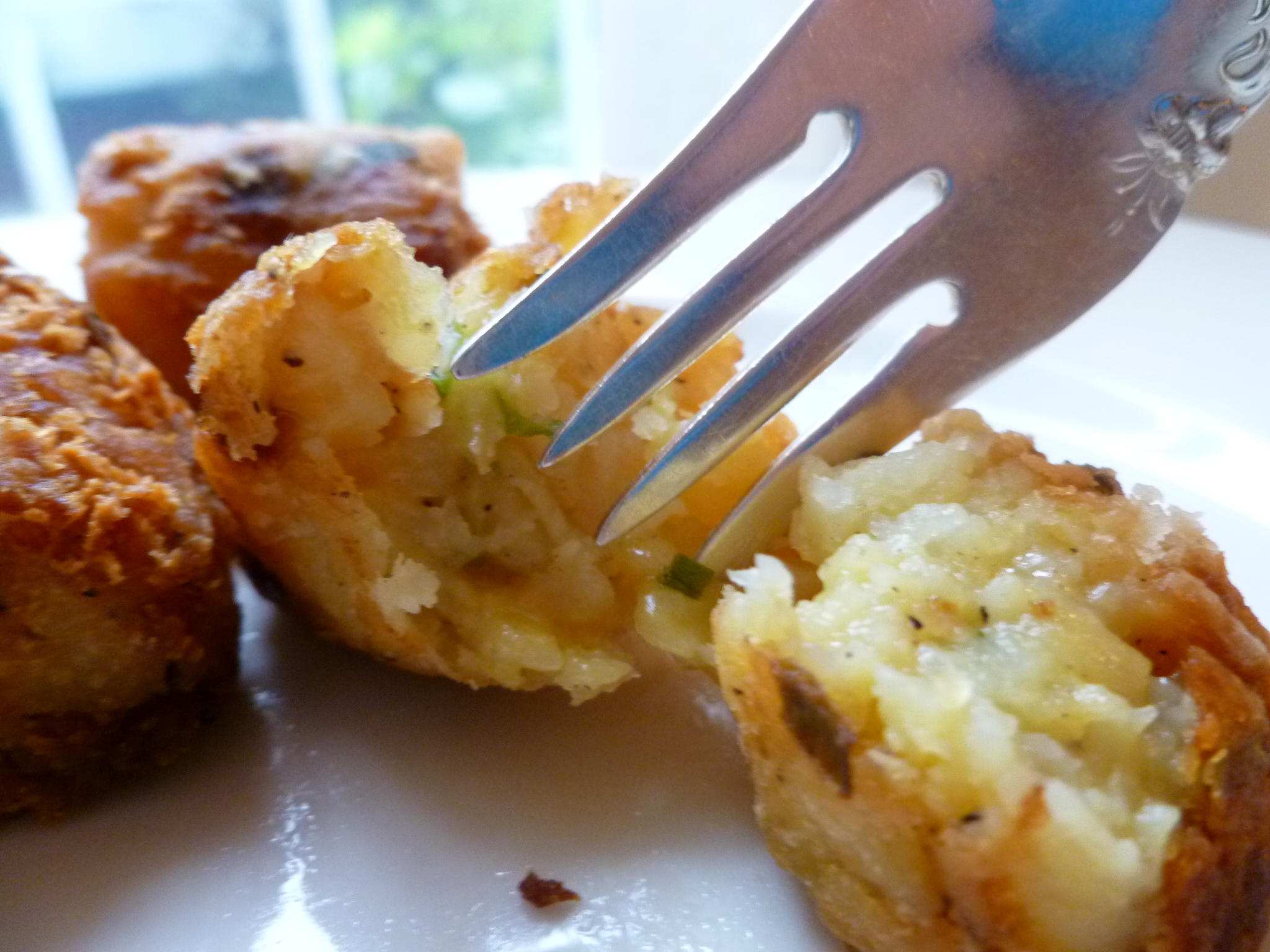 cheddar cheese, croquettes, deep fried potatoes, homemade Tater tots, potato with cheese, potatoes with Green onions