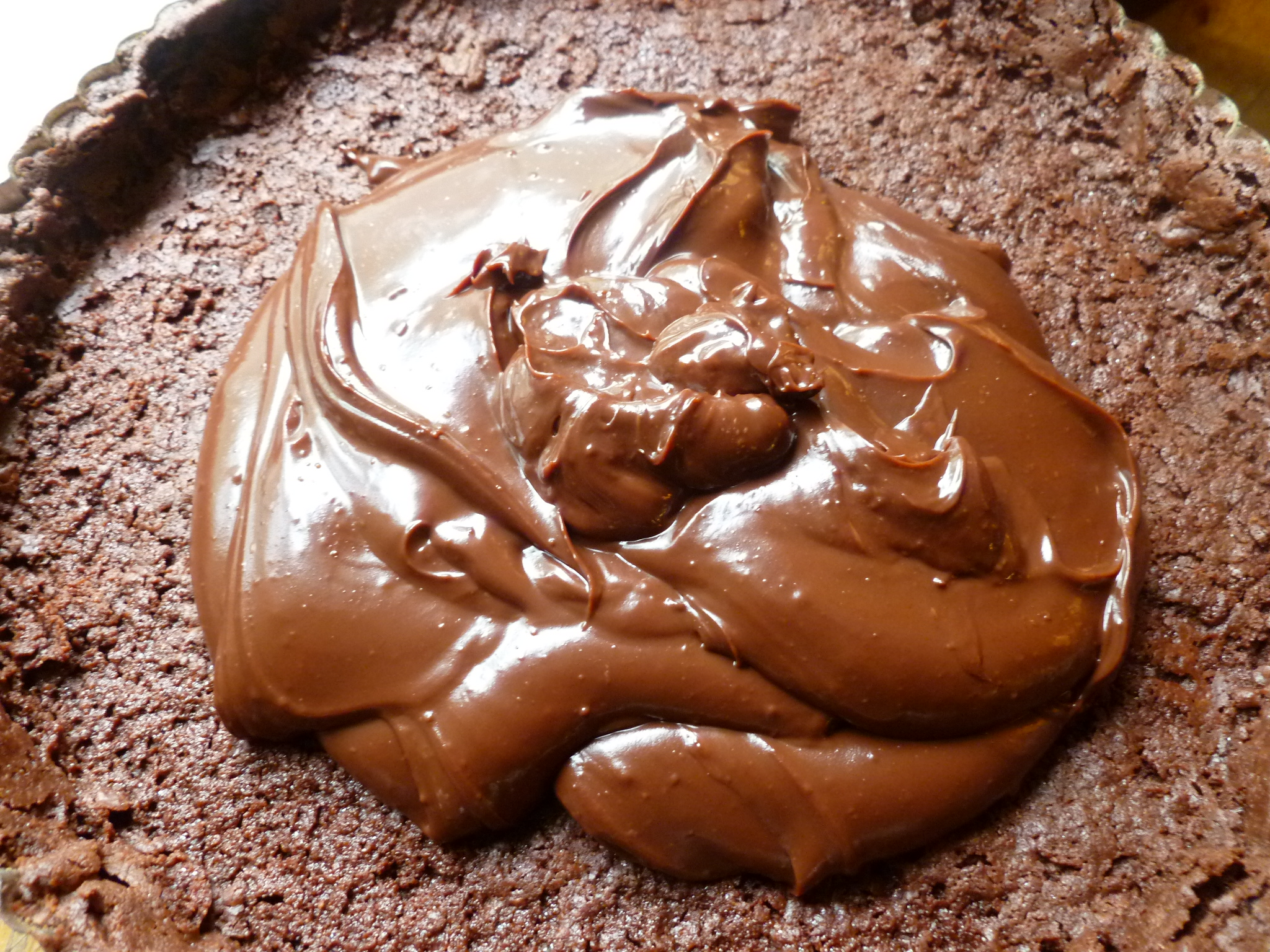 6.  Spread the filling smoothly over the shell, out to the edges of the tart’s rim: