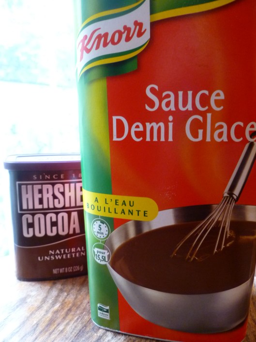 - the sauce requires 1/2 cup of demi-glace and some unsweetened cocoa powder: the instructions are given below