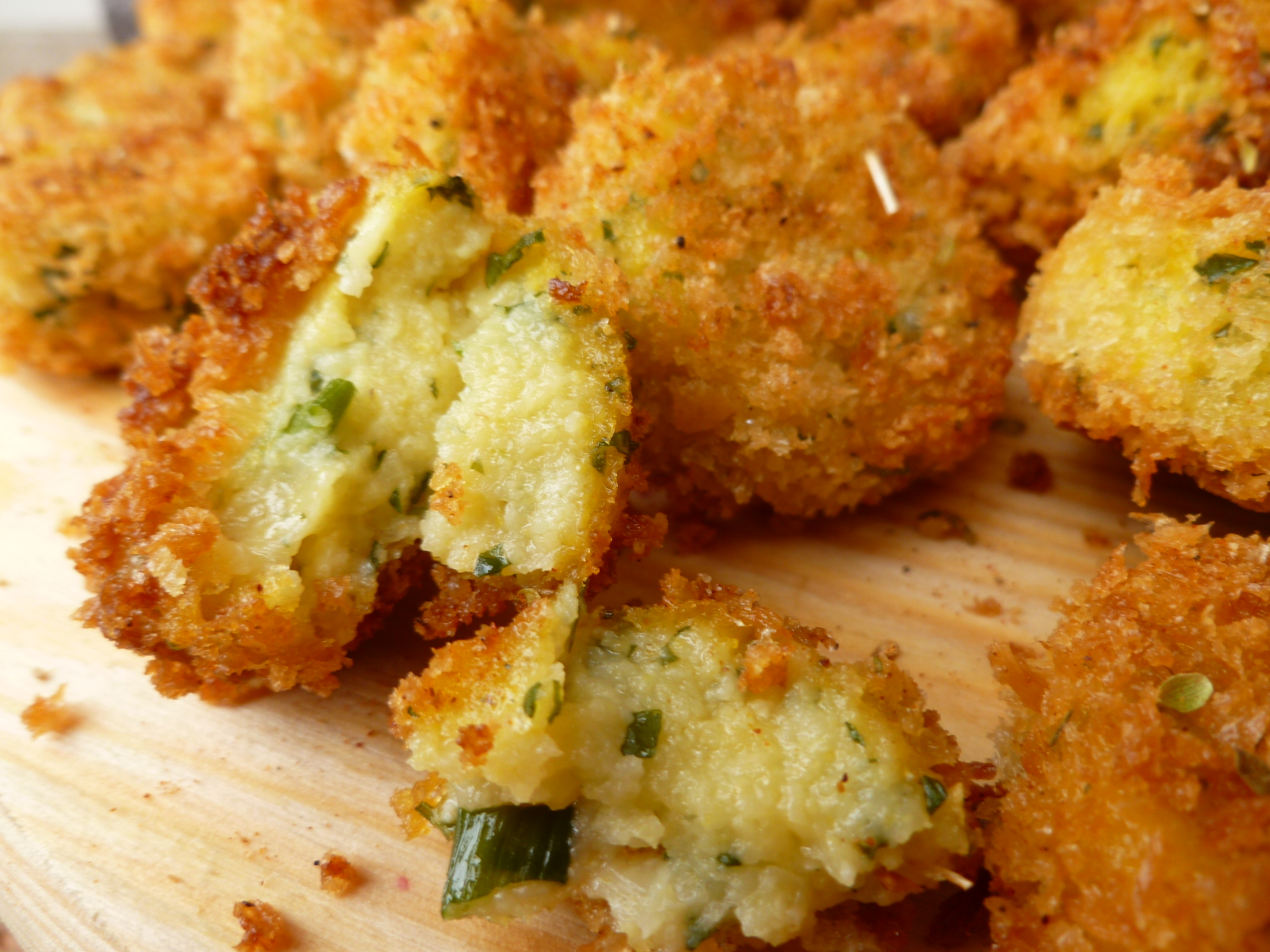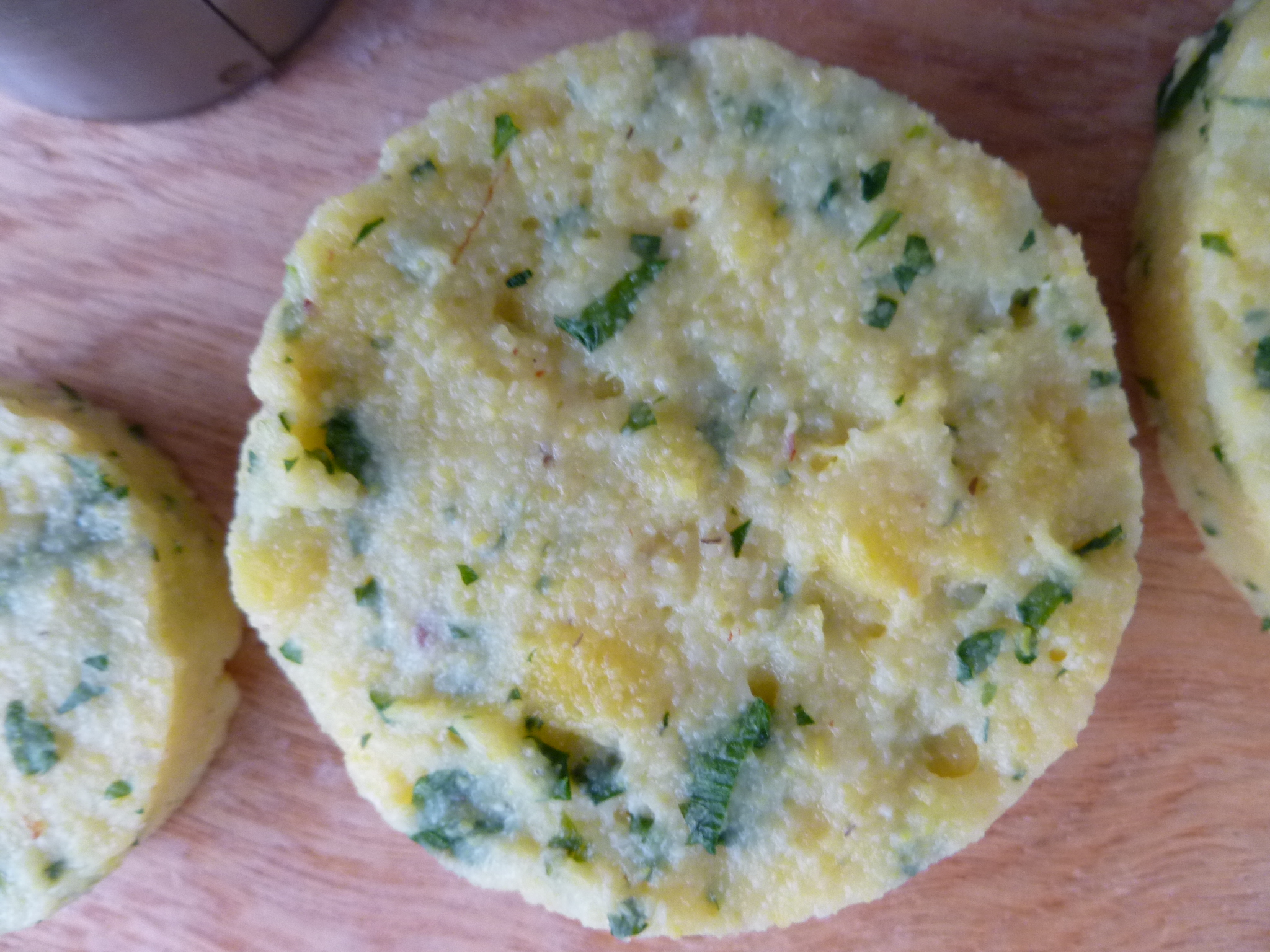 What Mrs. Fussell tells readers on the topic of the cornmeal and water mixture which is the basis of these Cheddar and Cornmeal Croquettes, begins with the simple observation: You Say Polenta, I Say Mush”.