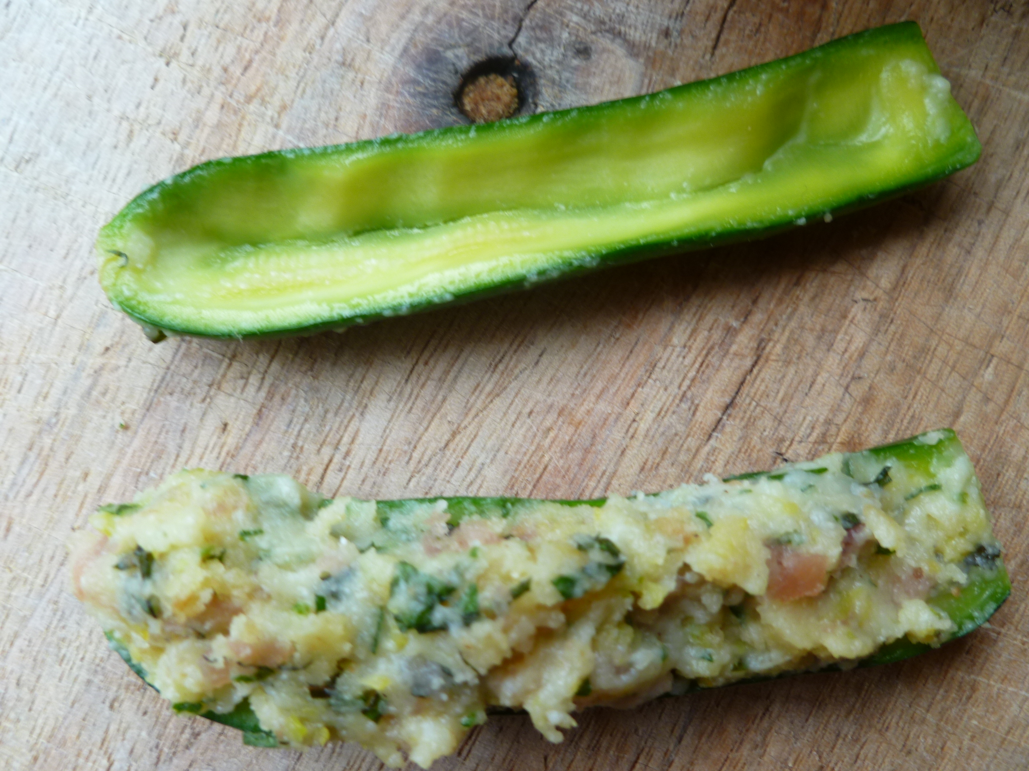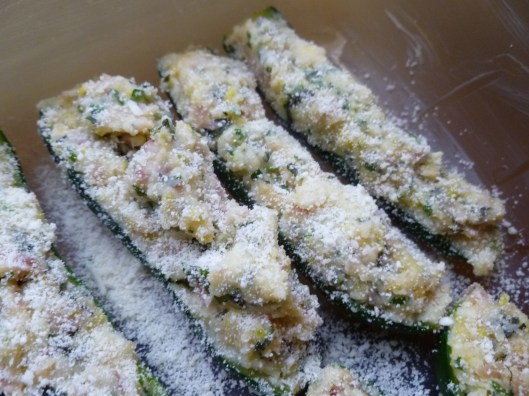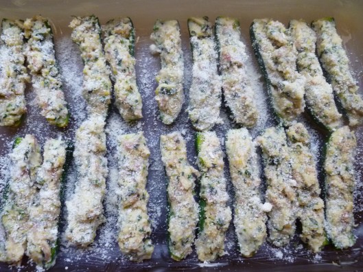 A Second Note:  The baby zucchini may be stuffed–and not baked–a day ahead of time.  Refrigerate them until ready to bake.