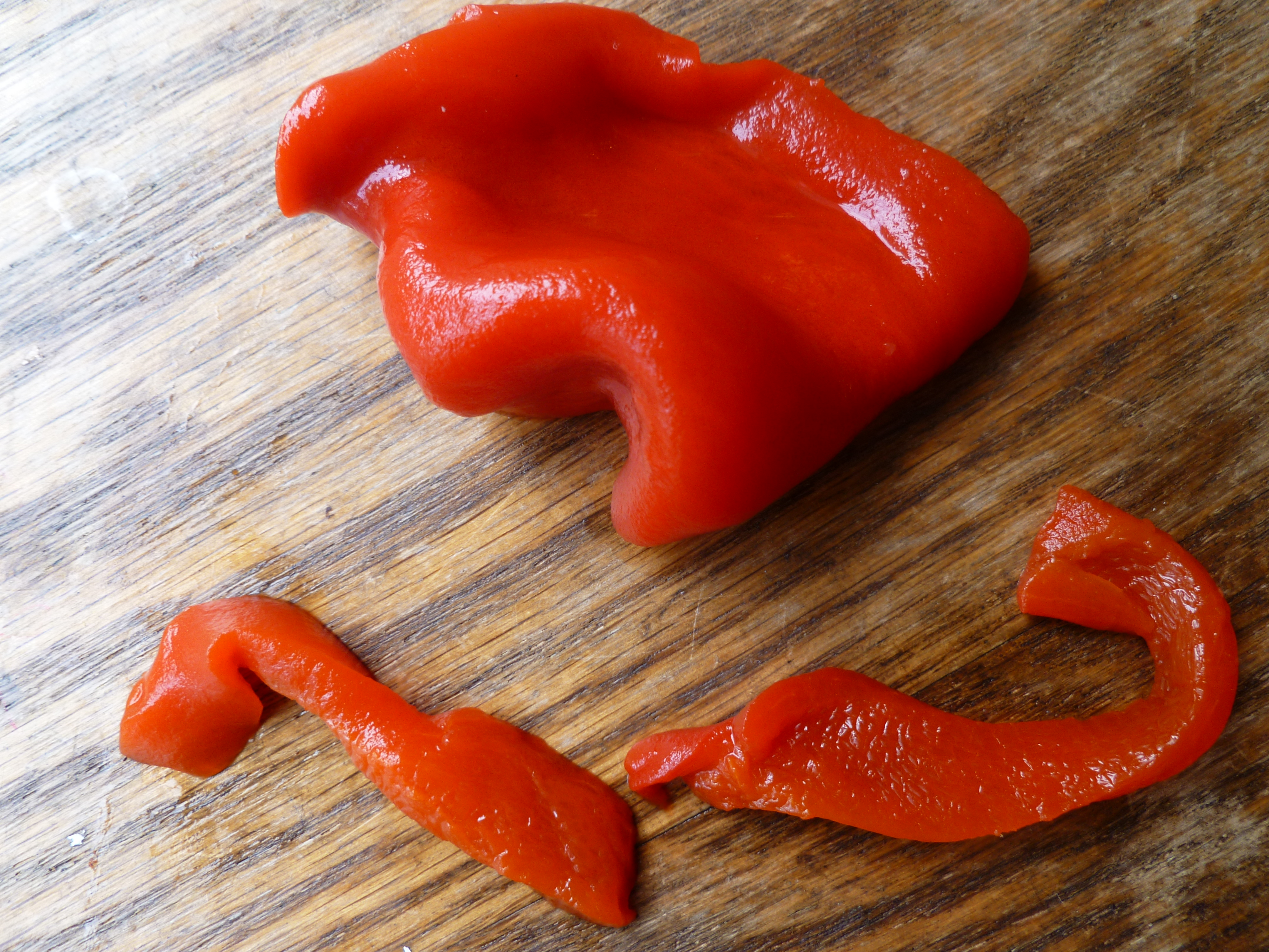 4. Garnish with a twist of roasted red pepper and sprinkle with some more parsley:
