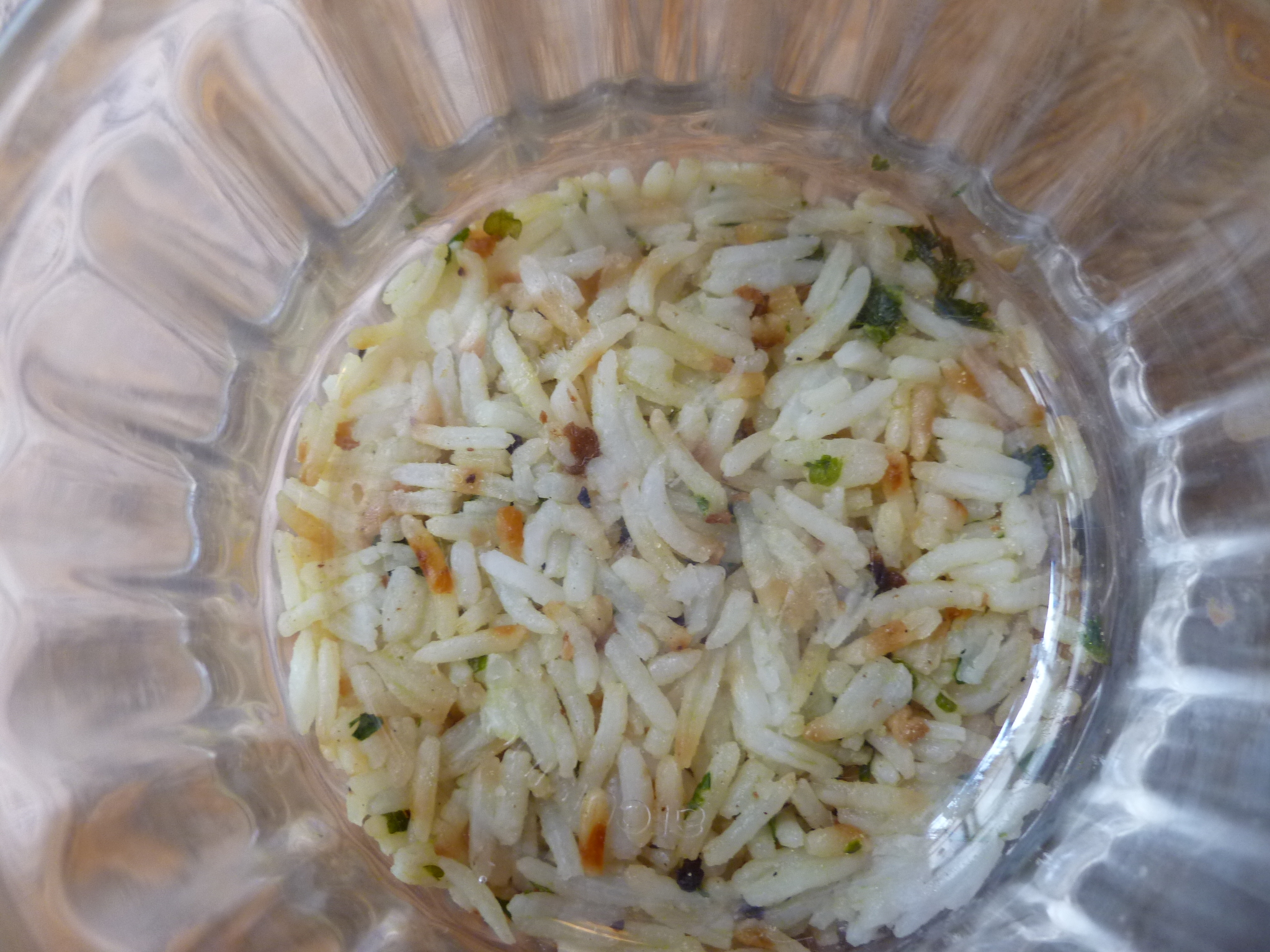 - a buttered ovenproof dish of any shape for reheating the rice: the rice in the photos is reheated in a 1 and 1/2 quart souffle dish