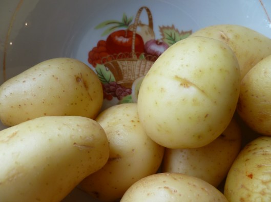 Baby potatoes (3 per person) or Regular Potatoes (1 for each person and one extra…which is traditional…like the spoon of tea leaves for the pot)