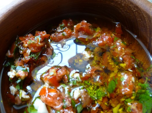 2. Mix together the ingredients for the vinaigrette and pour it over the tomato mixture: