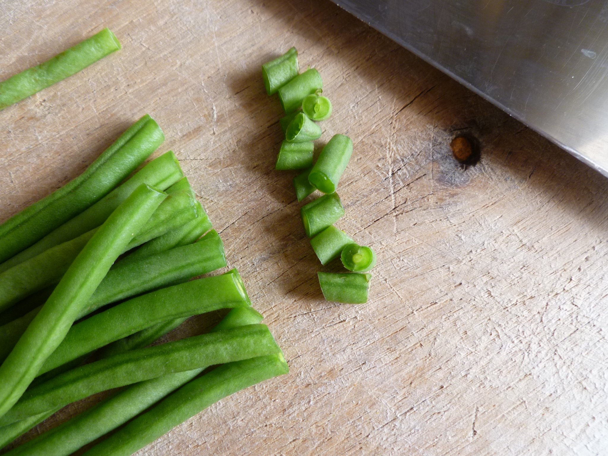 1. French Green Beans are stringless. An easy way of trimming them is to stand a handful on end–like dancers on toe shoes–to align them…