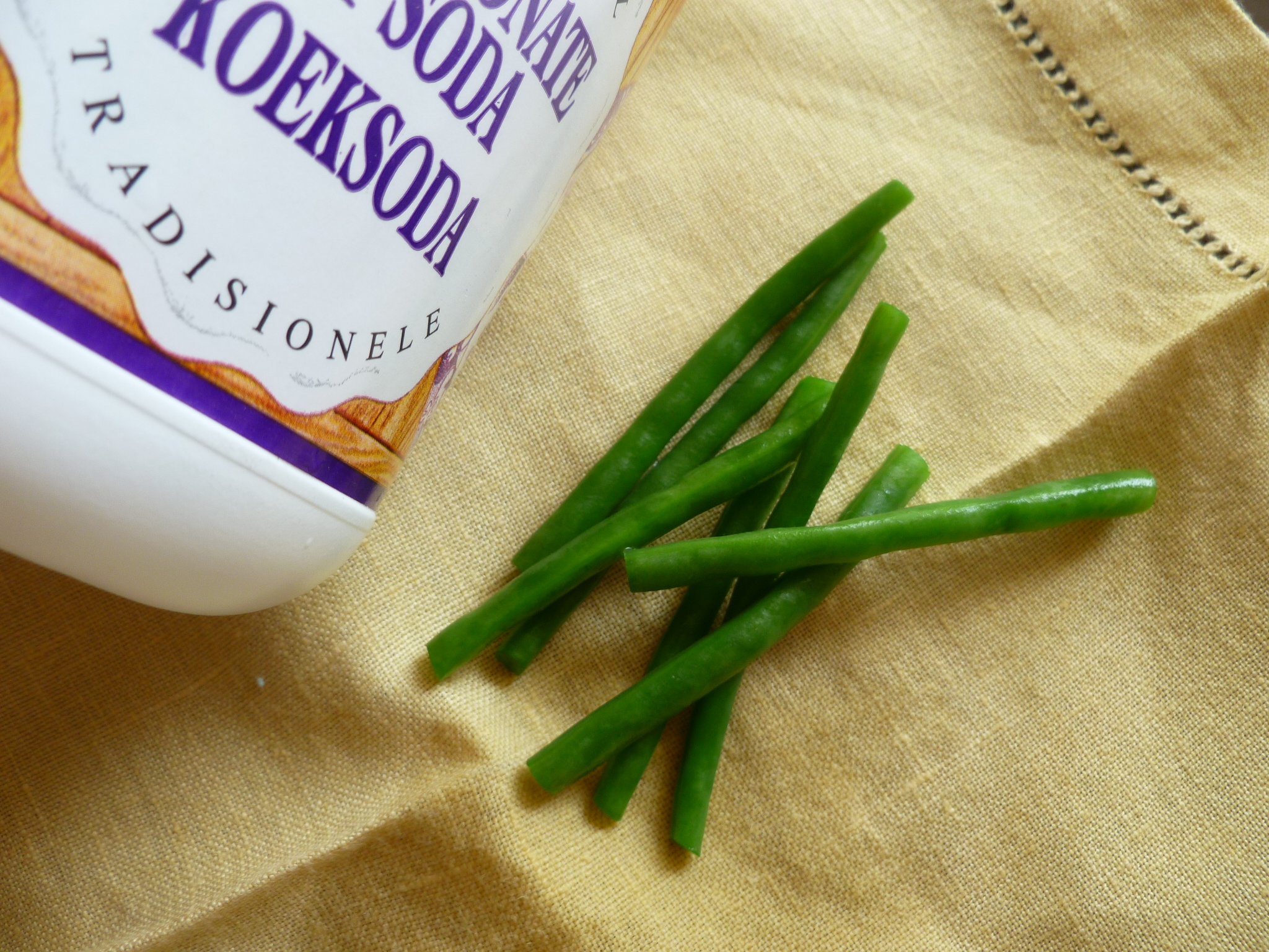 2. Fill the pot with water and 1 teaspoon of Bicarbonate of Soda and bring the water to a boil. (Bicarbonate of Soda tenderizes vegetables and will prevent green ones from losing their bright color when they are cooked.)