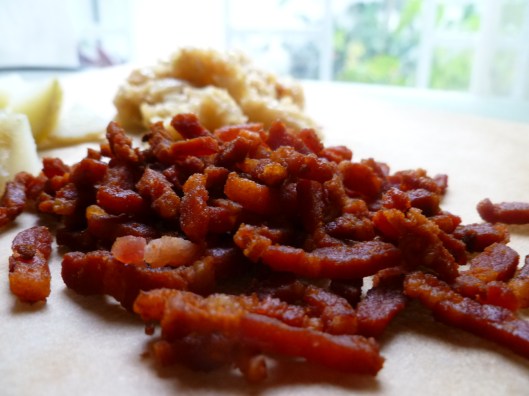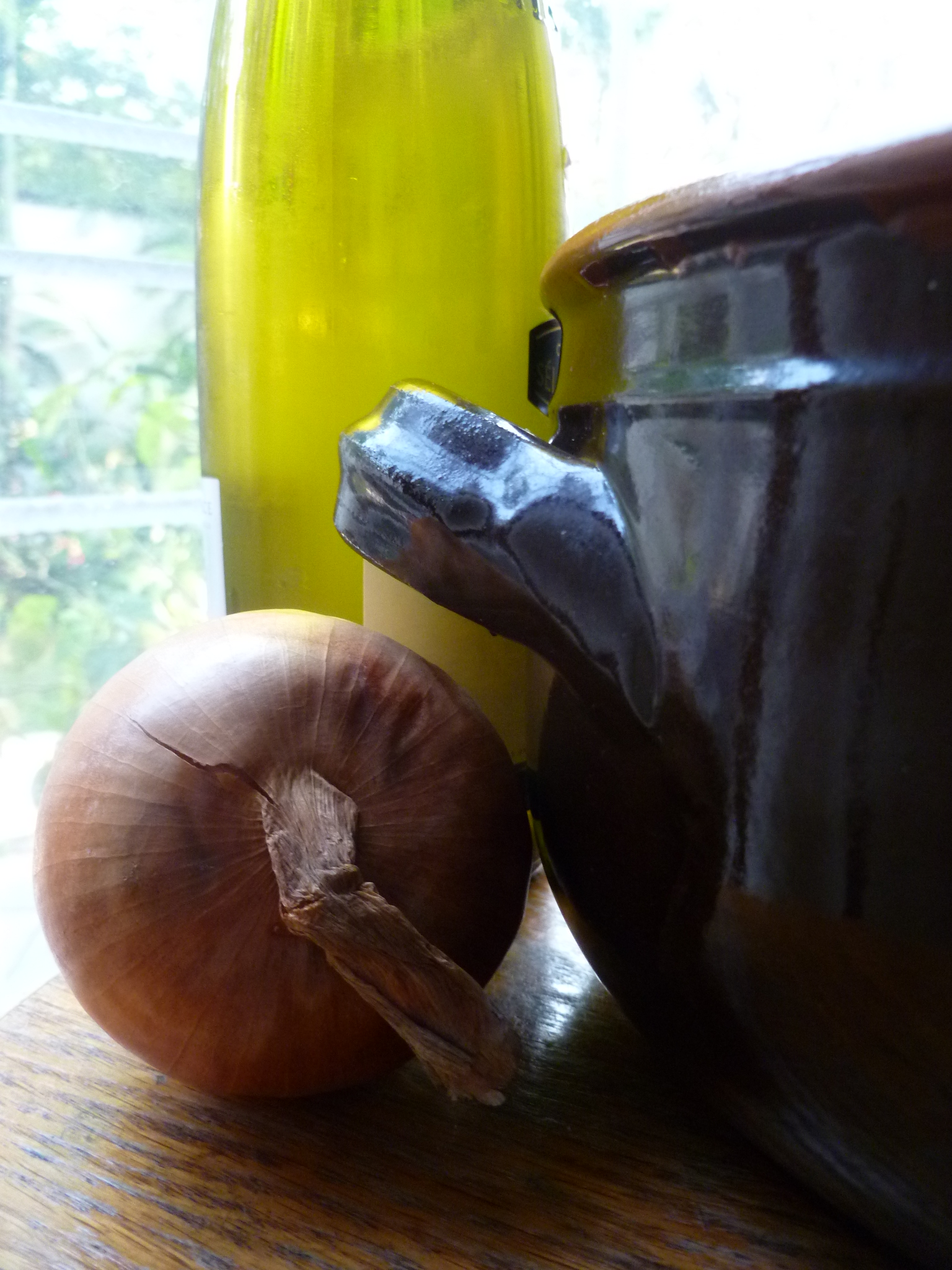 - 6 ounces of thick-sliced bacon cut into little cubes or a package of ‘lardons’ (about 200 grams in weight)