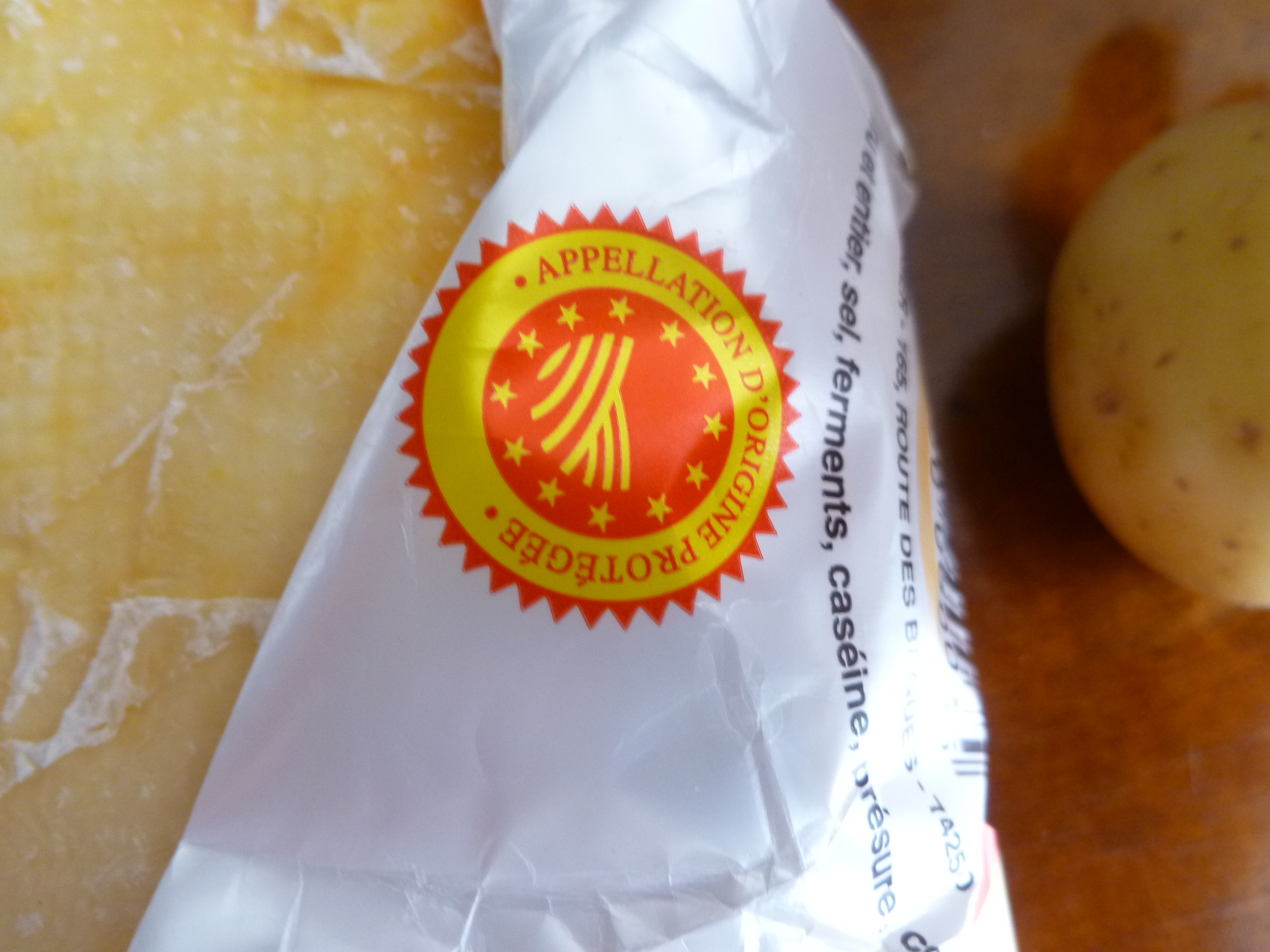 3. In 1958, Reblochon received the ‘AOC’ title. This means that a special group in the French Ministry of Agriculture guarantees that it is produced in a “consistent and traditional manner from specifically classified producers in designated geographical areas” The maker can’t put the AOC label on his cheese if it doesn’t conform to AOC standards. The label in the photo (‘AOP’) is the European Union’s version of the old French national ‘AOC’ and is gradually replacing it: