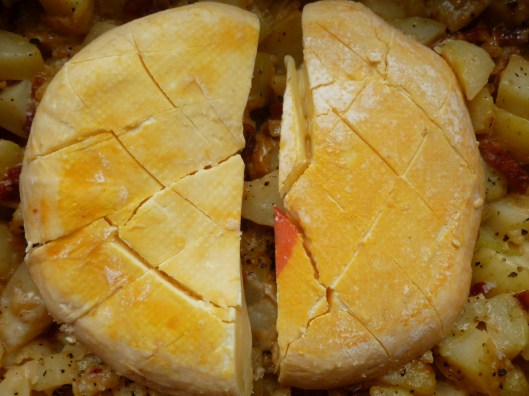 In the United States, real Reblochon is unavailable because the FDA made its import illegal in 2005. A substitute, ‘Fromage de Savoie’, is sold in the States and may even be called ‘Reblochon’. It is not the real McCoy because it is aged longer than true Reblochon and therefore not as soft. ‘Le Delice du Jura’ is a soft-ripened cheese made of the same milk as Reblochon–only pasteurized–and is recommended by experienced cheese lovers as a substitute…and Tartiflette is a dish good enough to merit searching out a way to get around the ban on the real thing.