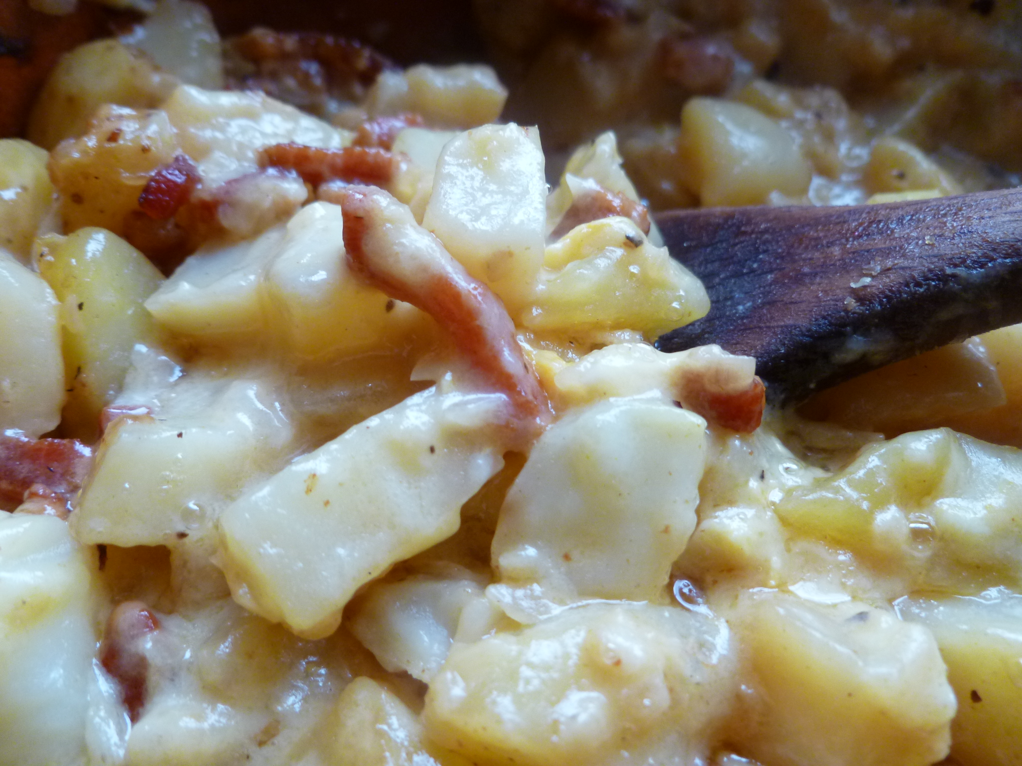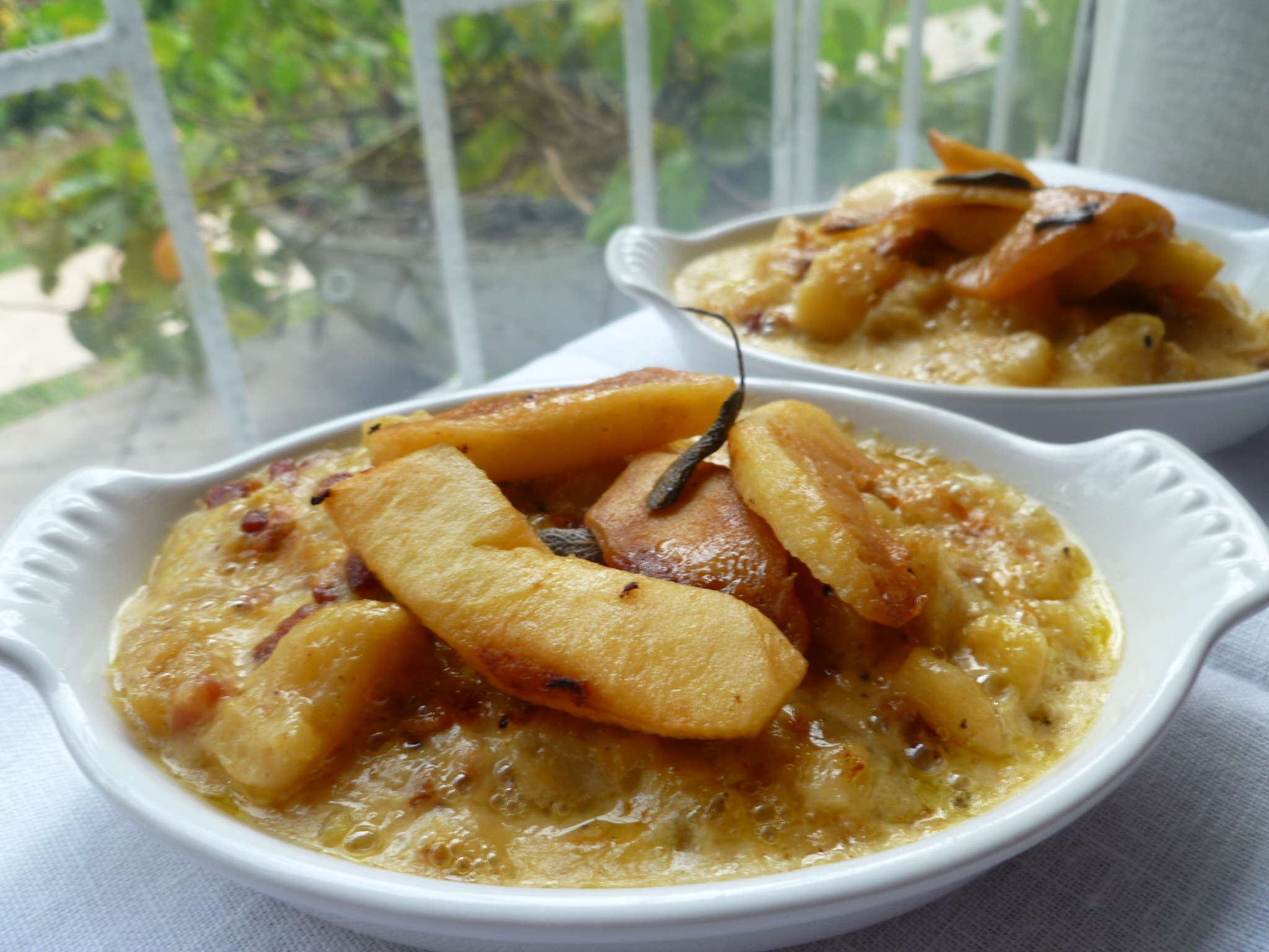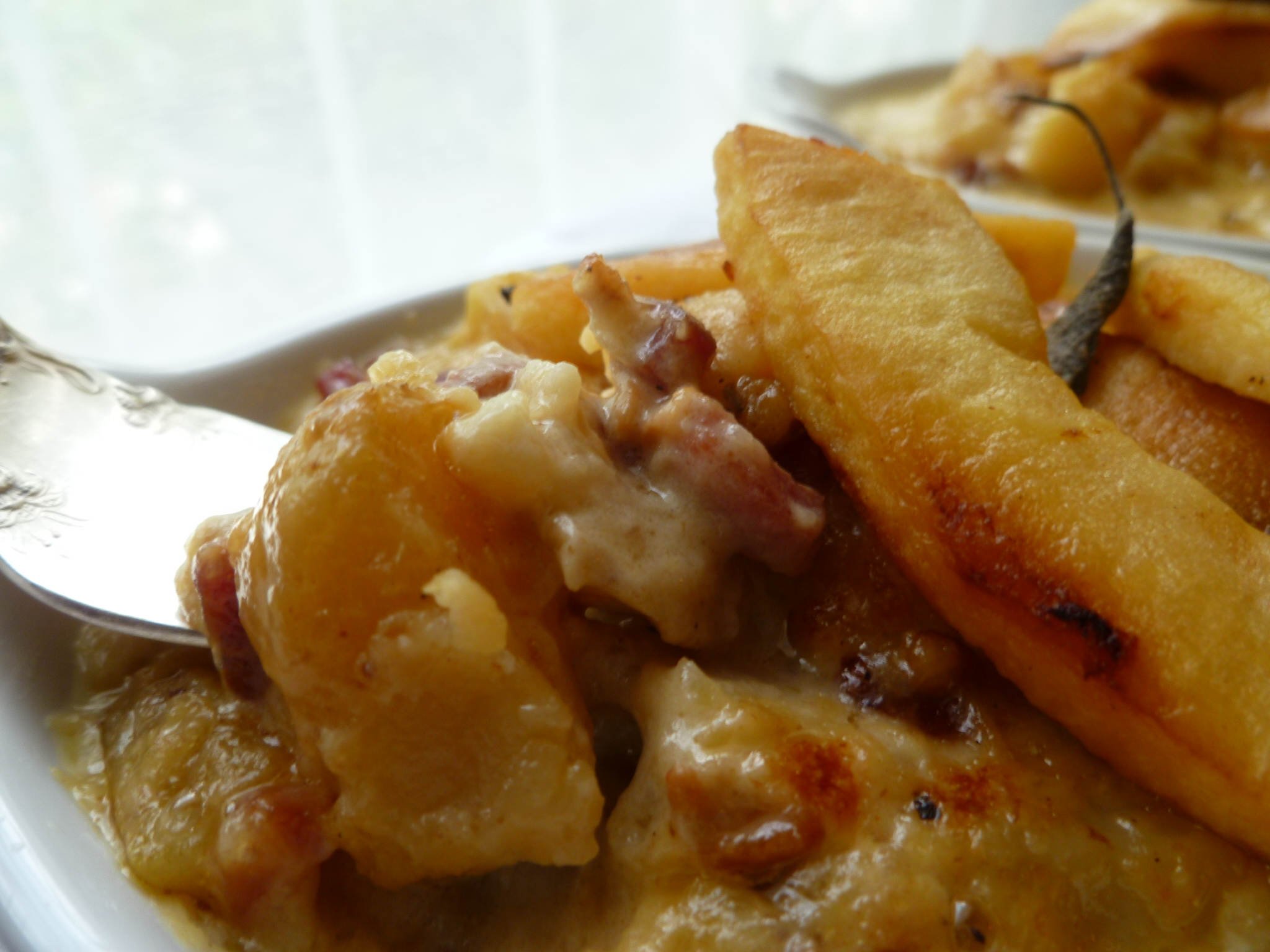 bacon and cheese recipes French cheese, French cheese dishes, Le Delice du Jura, potato recipes, Reblochon, Reblochon substitute, sauteed apple slices