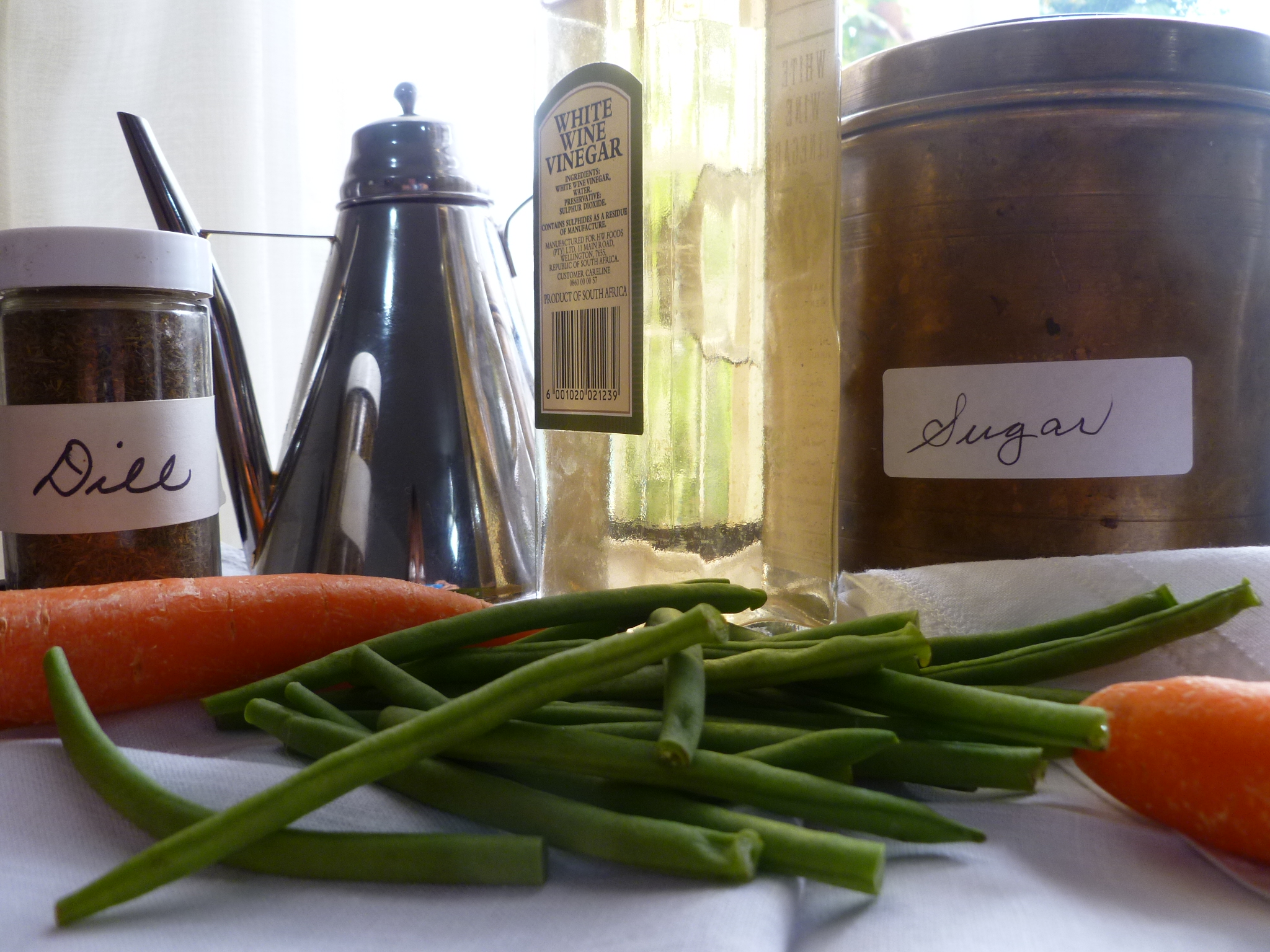 French Green Beans and Marinated Baby Carrots with Mustard Dill Dressing (for 6 people, easily increased for a larger number)