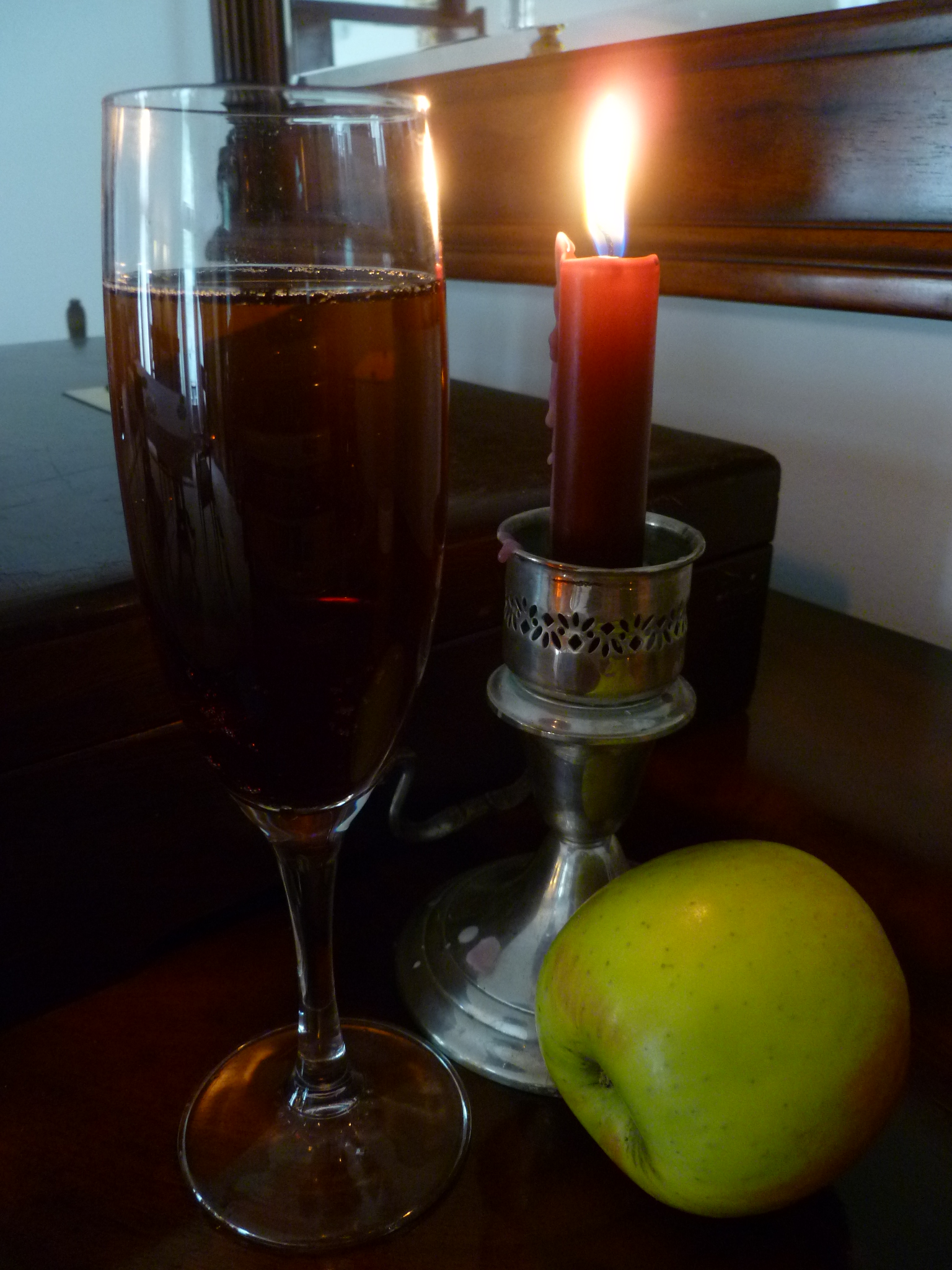 A Note: Kir Breton ~ Kir Normande is a suggested Aperitif to begin the Lunch Menu: Lunch on a Winter’s Day. The drink is nice, too, to have before the fire or by candlelight.