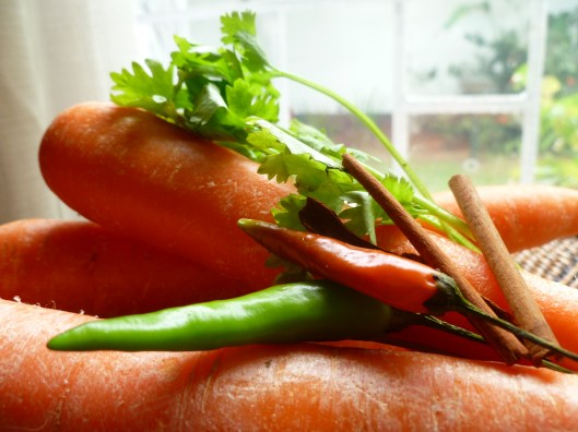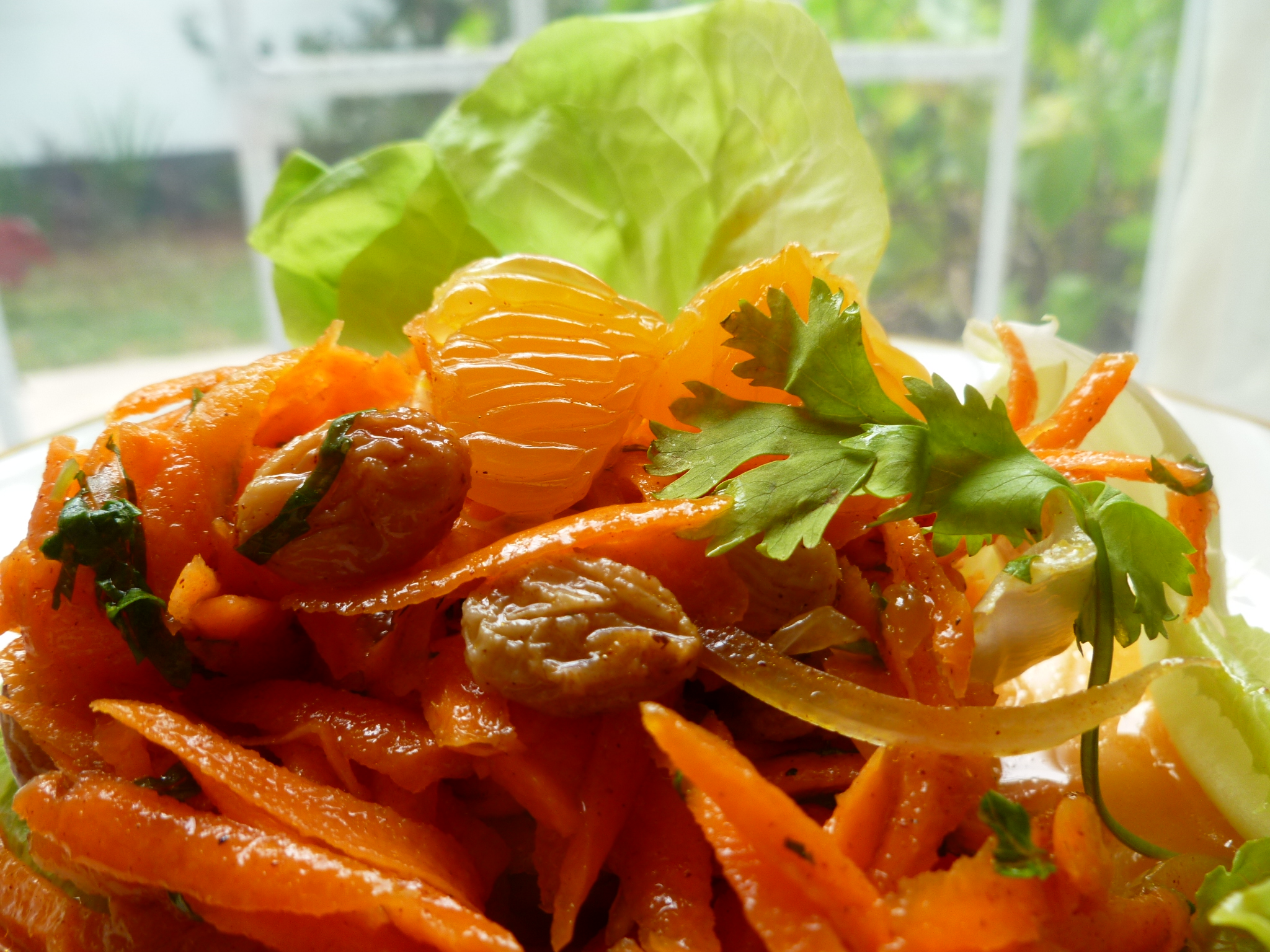 carrot salad, carrots and dried fruit, carrots and raisins salad, clementines, food, Mandarins, serrano chili, tangerines, Thai green chili