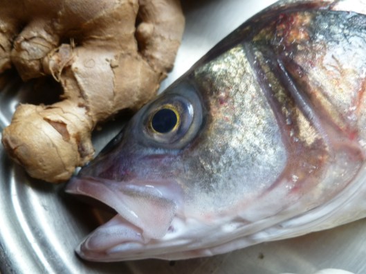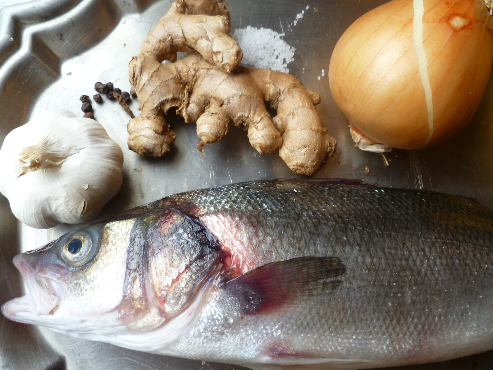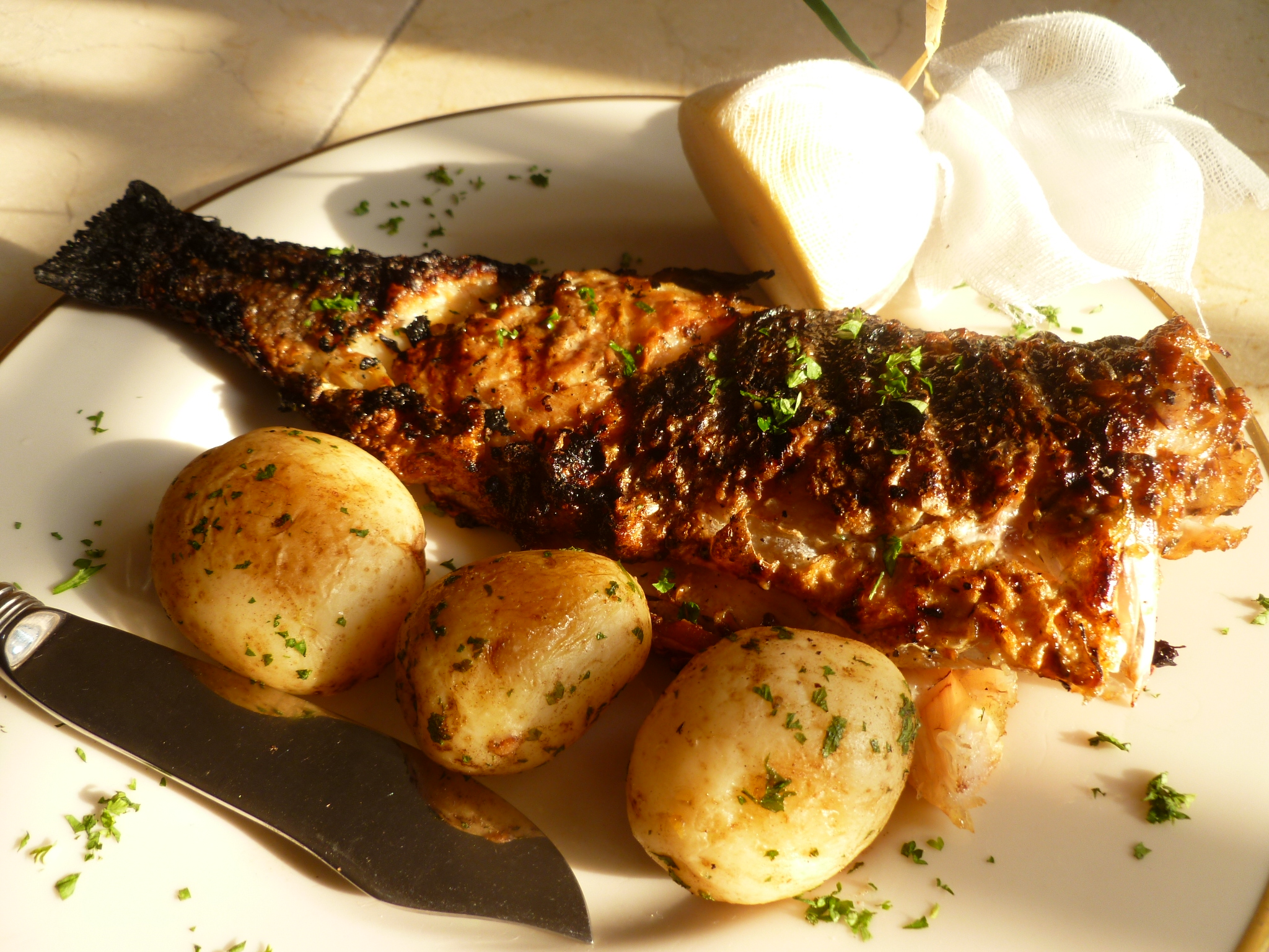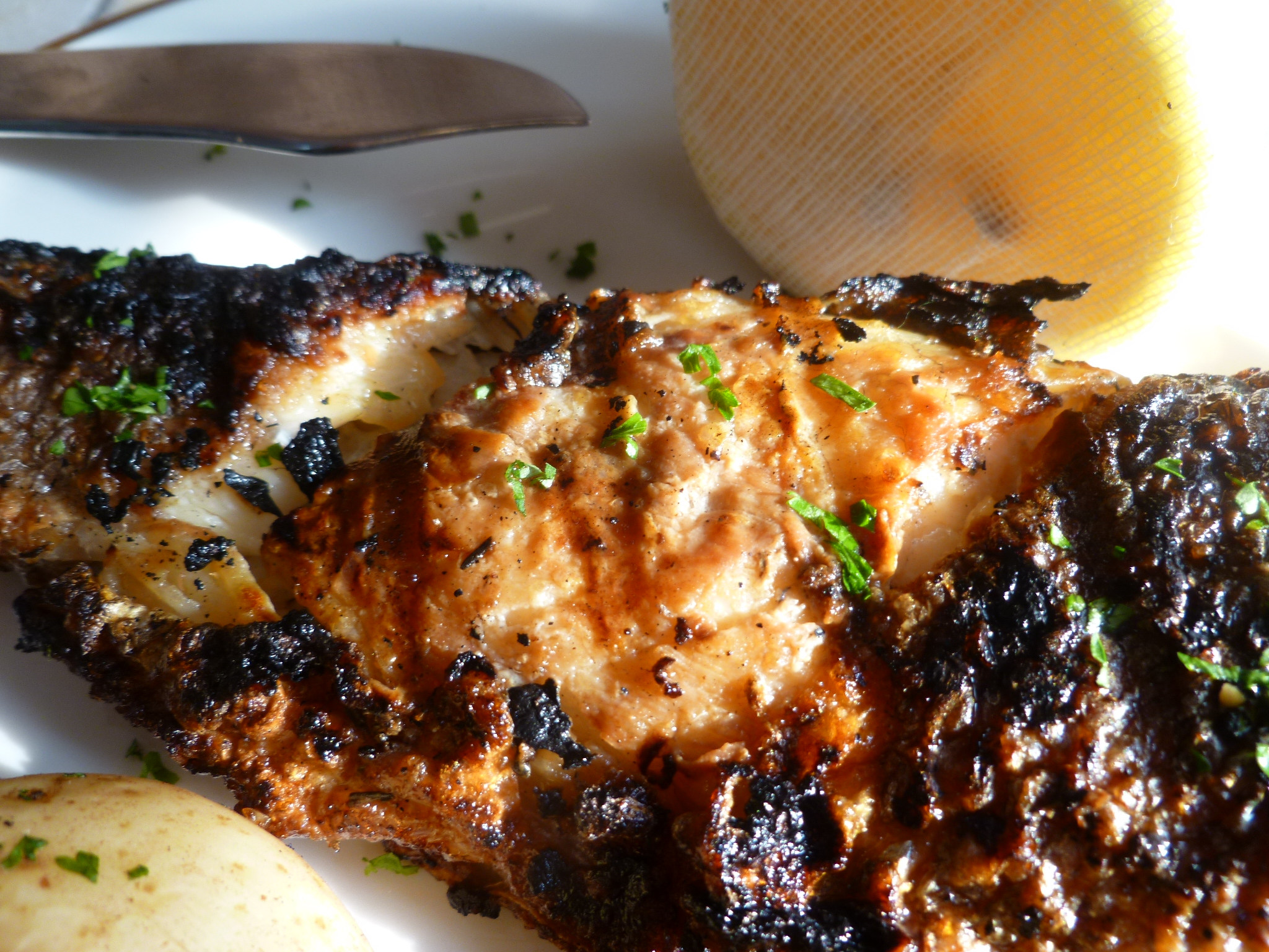 There is no big mystery about successfuly grilling a whole fish. A good technique is all you need. The Congolese have one that works well for cooking a whole fish without drying it out. This is the one used here for grilling a whole Sea Bass. The marinade for the fish is also Congolese in origin, given to the diplomatickitchen by a chef in Kinshasa. It is not authentic to any place and is first-rate.