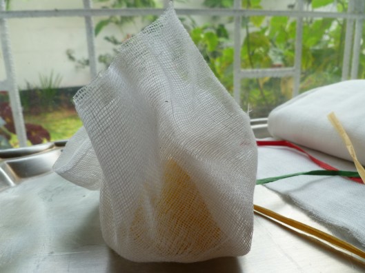 - 6 Cheesecloth squares: 2 layers thick, about 7″ x 7″ each in size