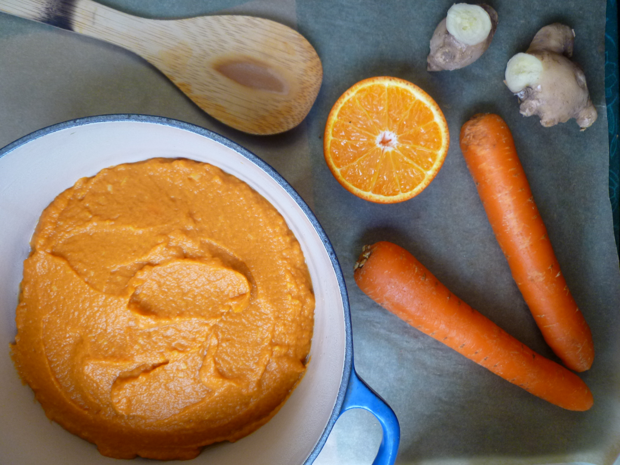 Purée of Carrots, Sweet Potato, Fresh Ginger and Clementine (for 8 people)