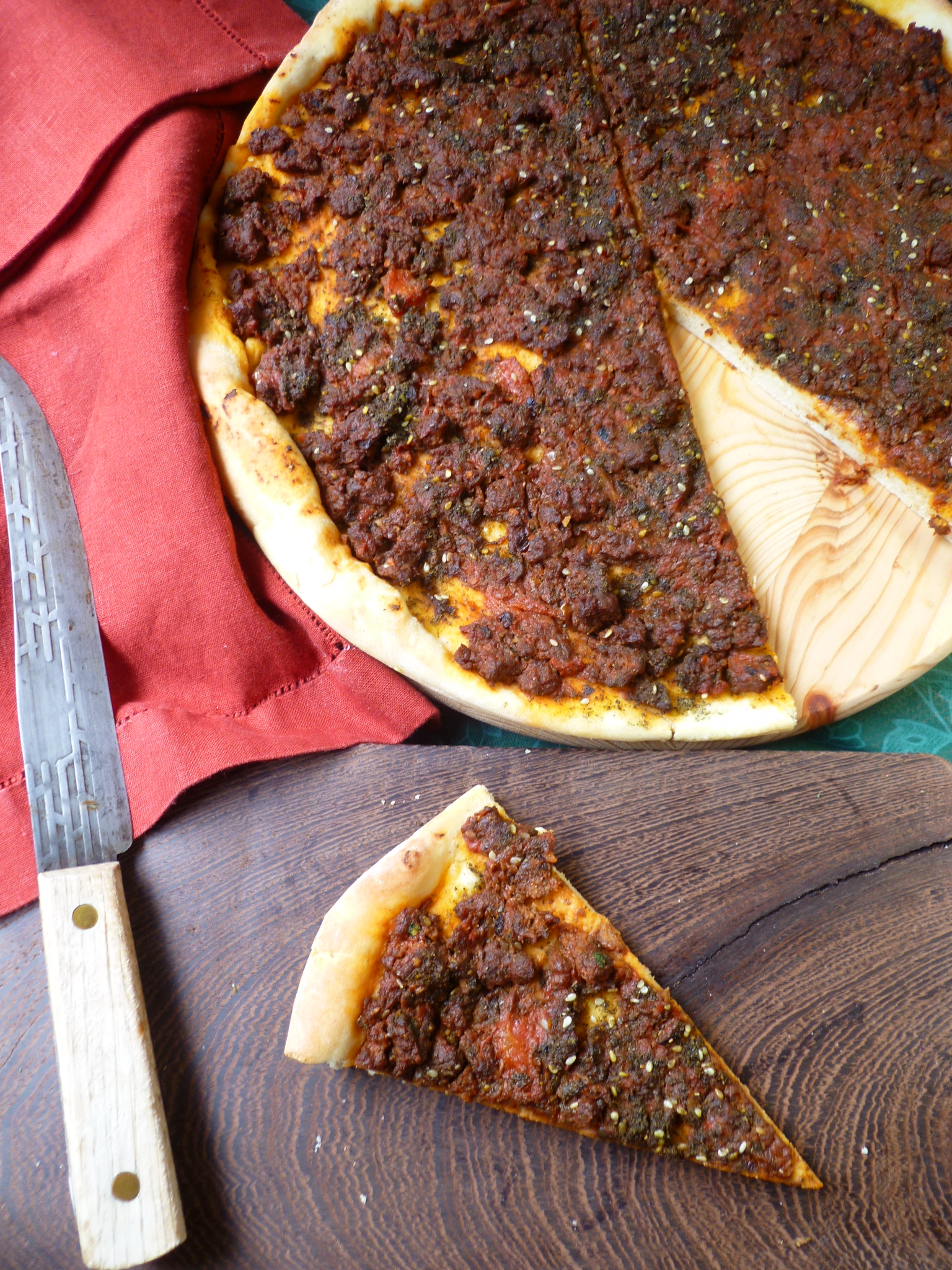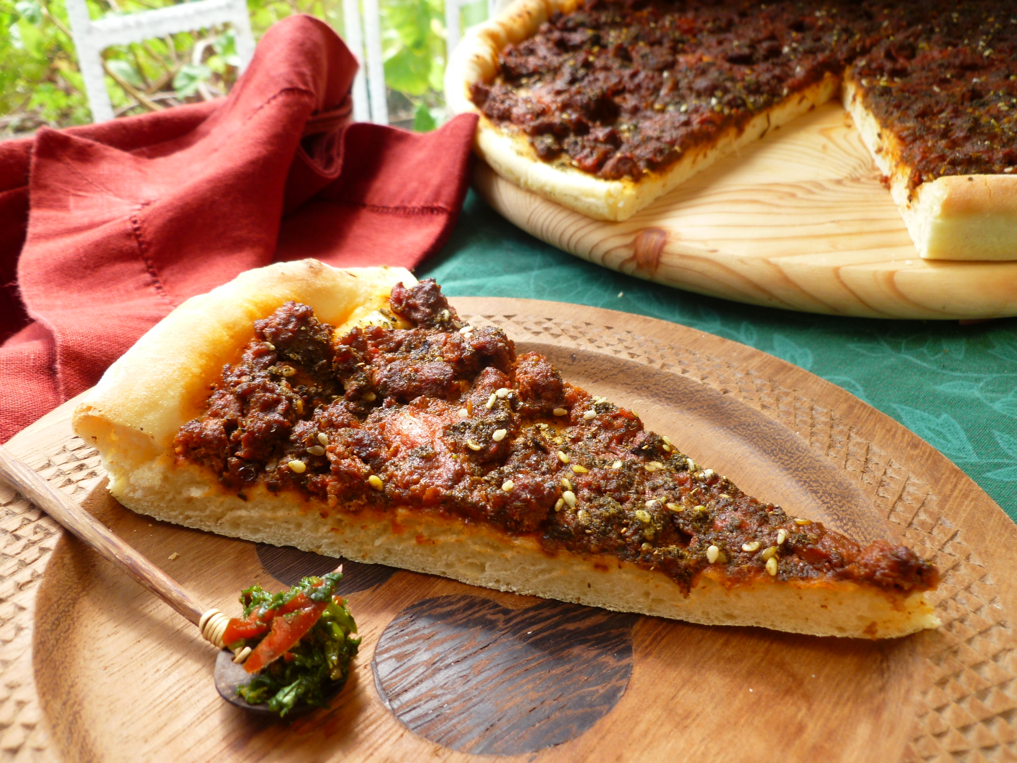 Anissa Helou, flatbread, fresh cilantro and parsley sauce, hot chutney, how to make Za'atar, make-ahead appetizers, Mediterranean recipes, Merguez pizza, picnic food, picnic recipes, recipes by Elizabeth David, recipes with merguez sausage