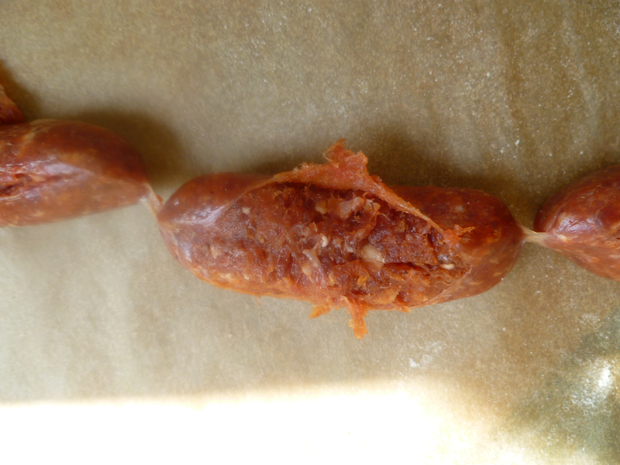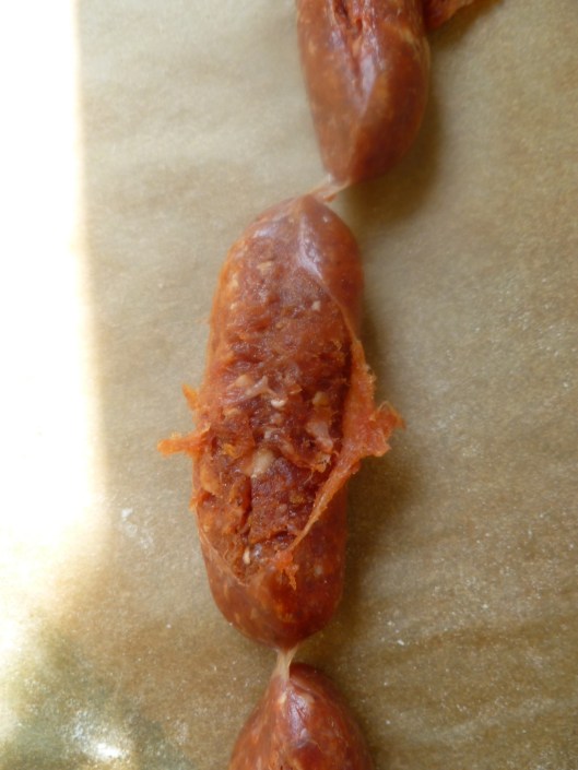 …and remove the ground meat filling. Usually the filling comes away from the casing easily…
