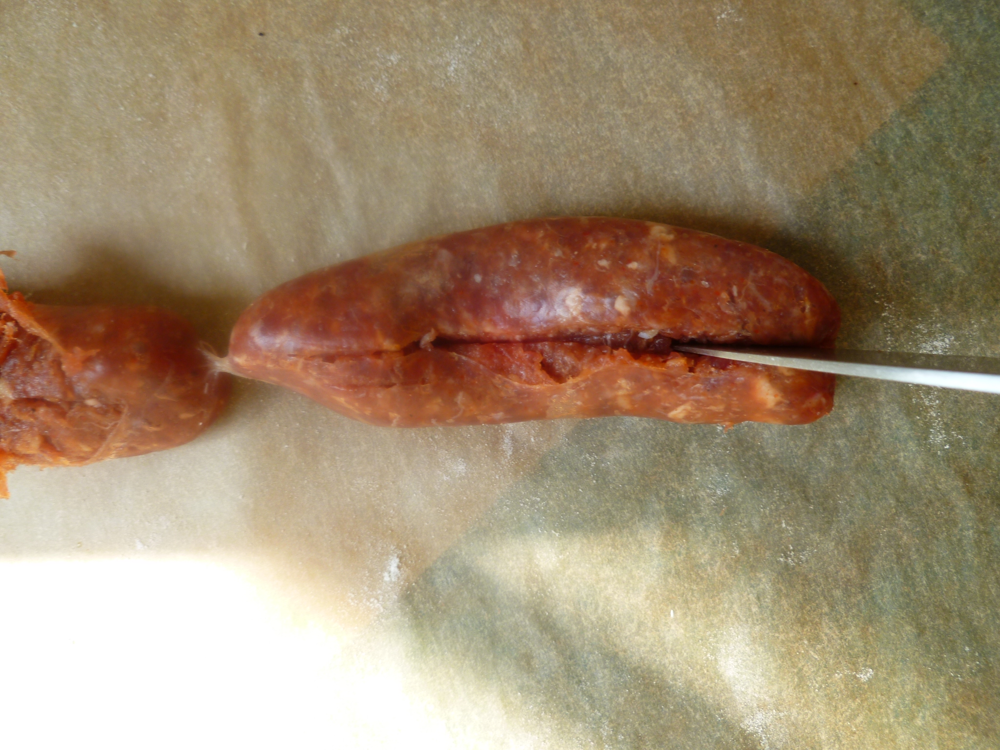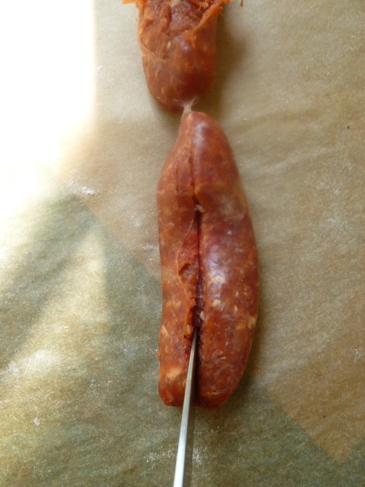 1. Slit open the sausage casings lengthwise…