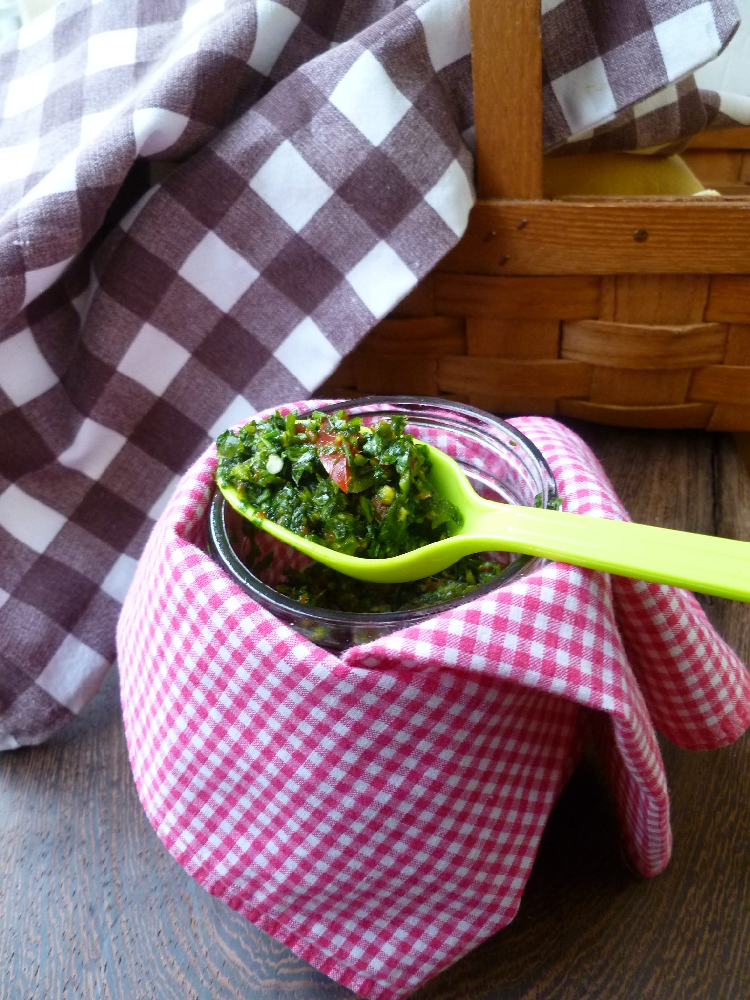 A Note: Mediterranean Merguez Flatbread with Hot Cilantro ~ Parsley Chutney is part of the Occasional Menu: Into the Picnic Basket.