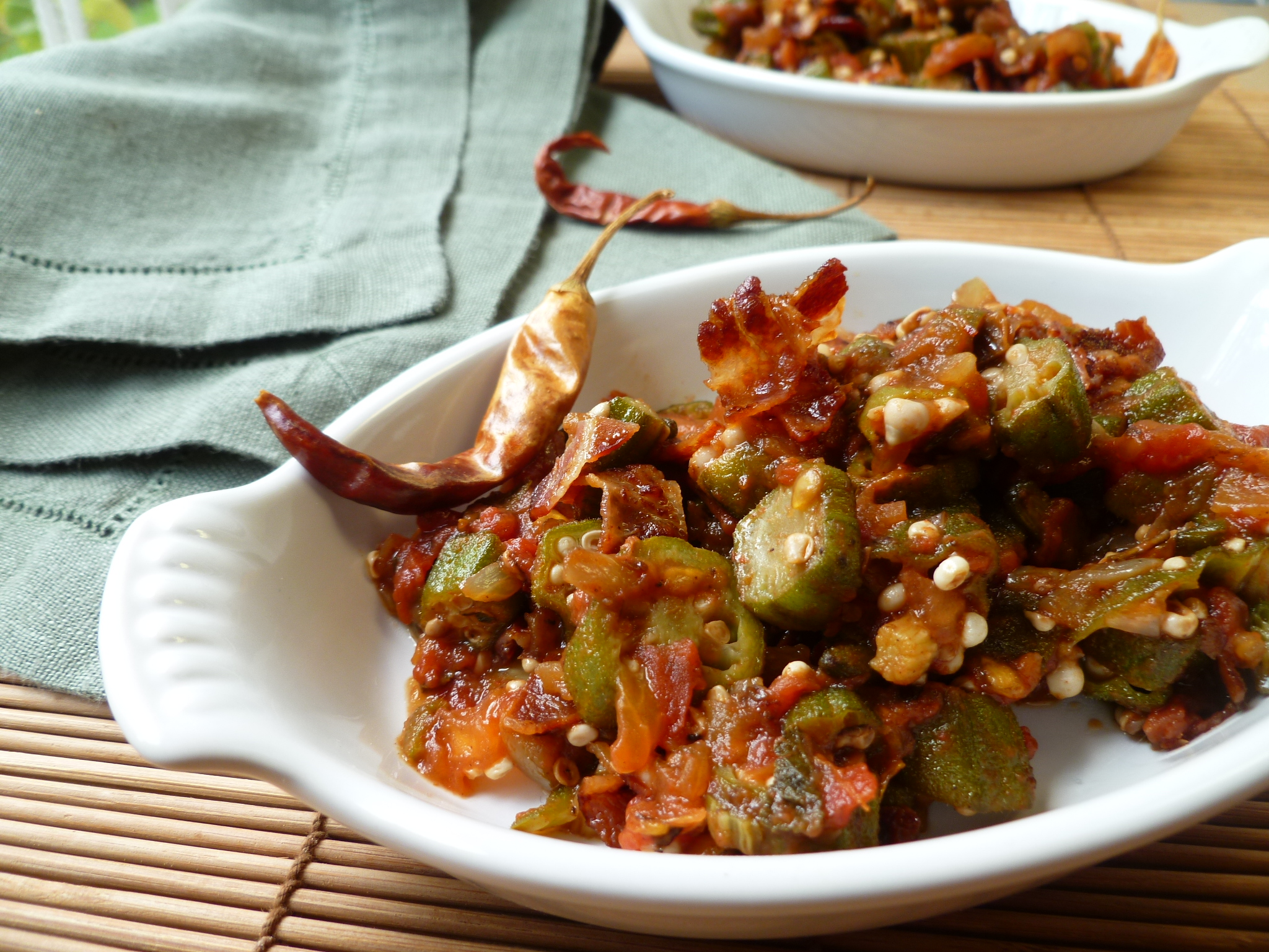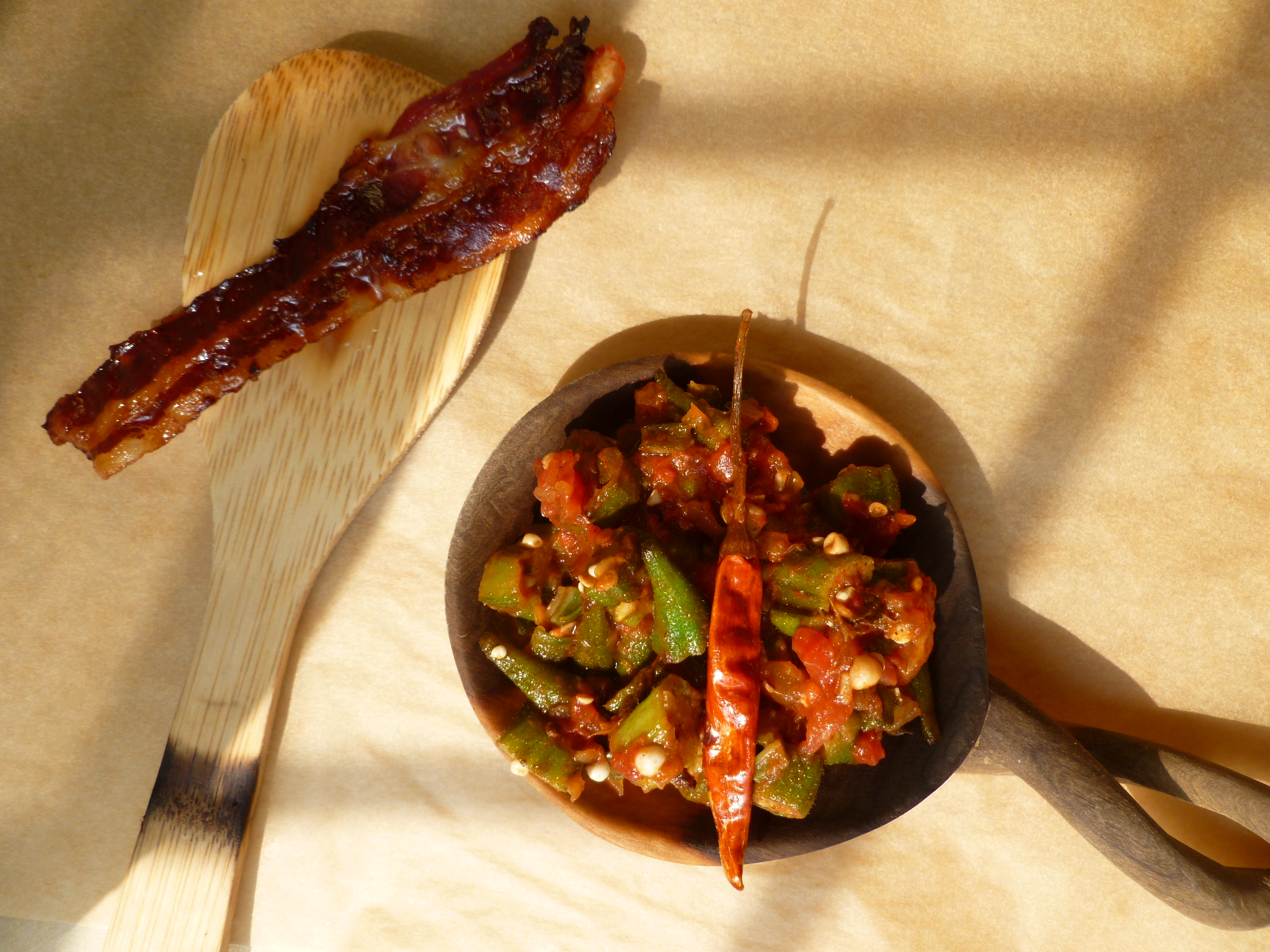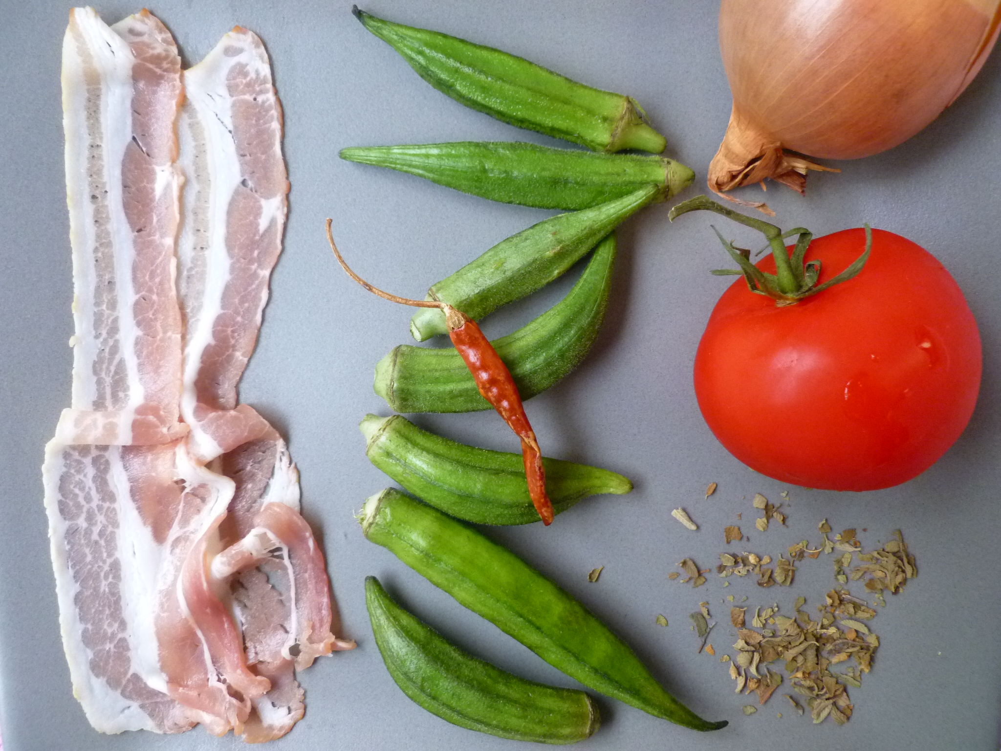 Okra, Tomatoes, Chilies and Bacon (for 8 people)