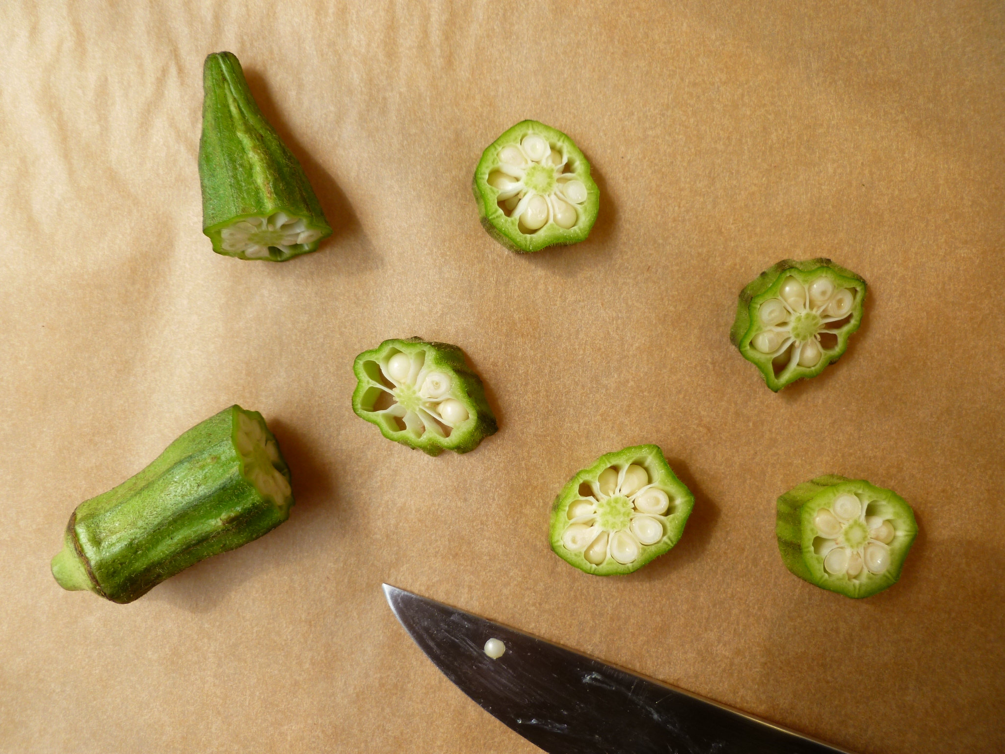 - 2 pounds of small fresh Okra, cut in 1/4-inch rounds