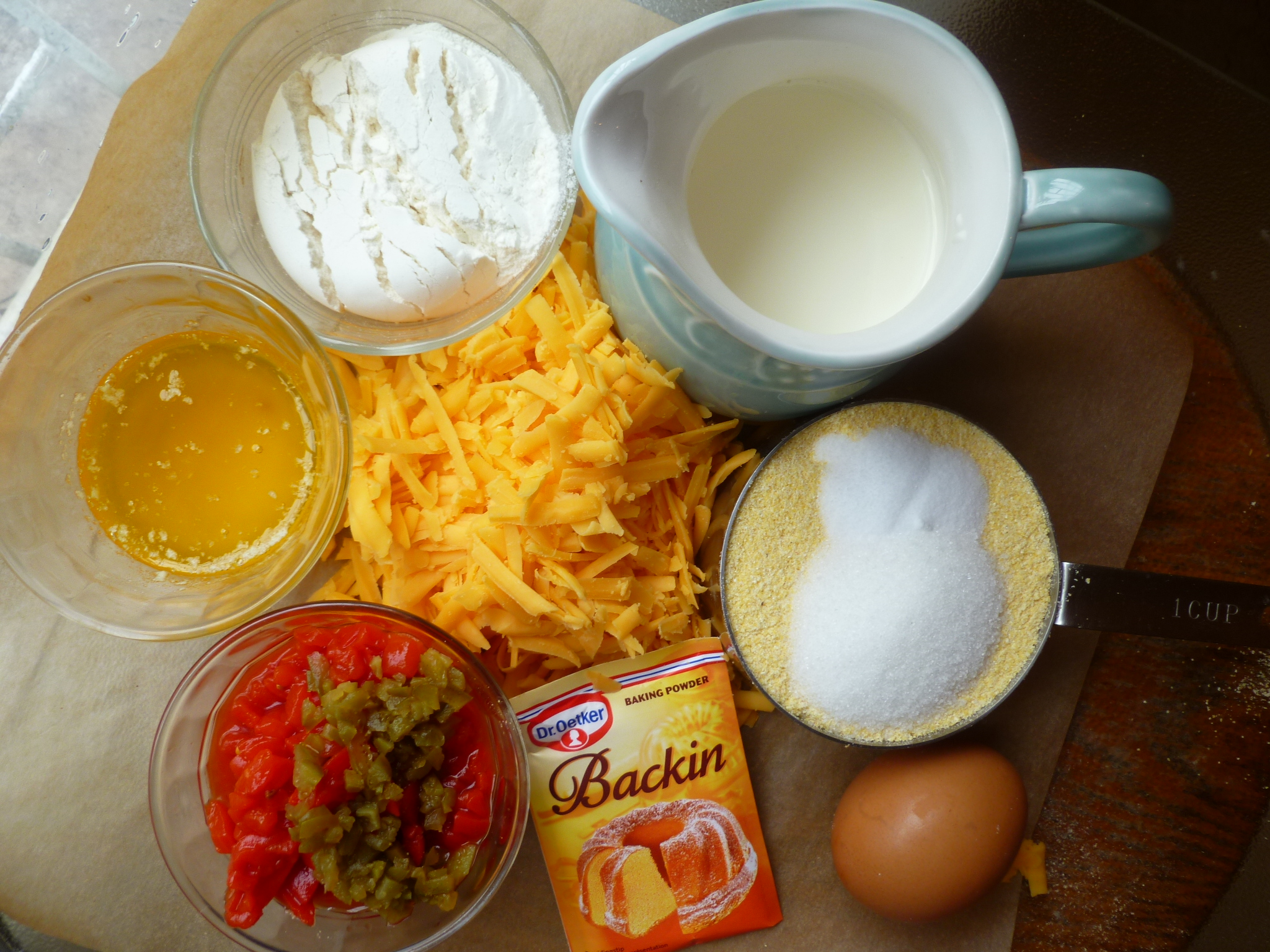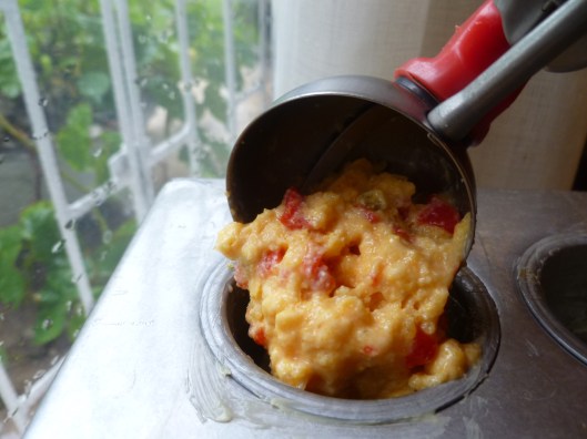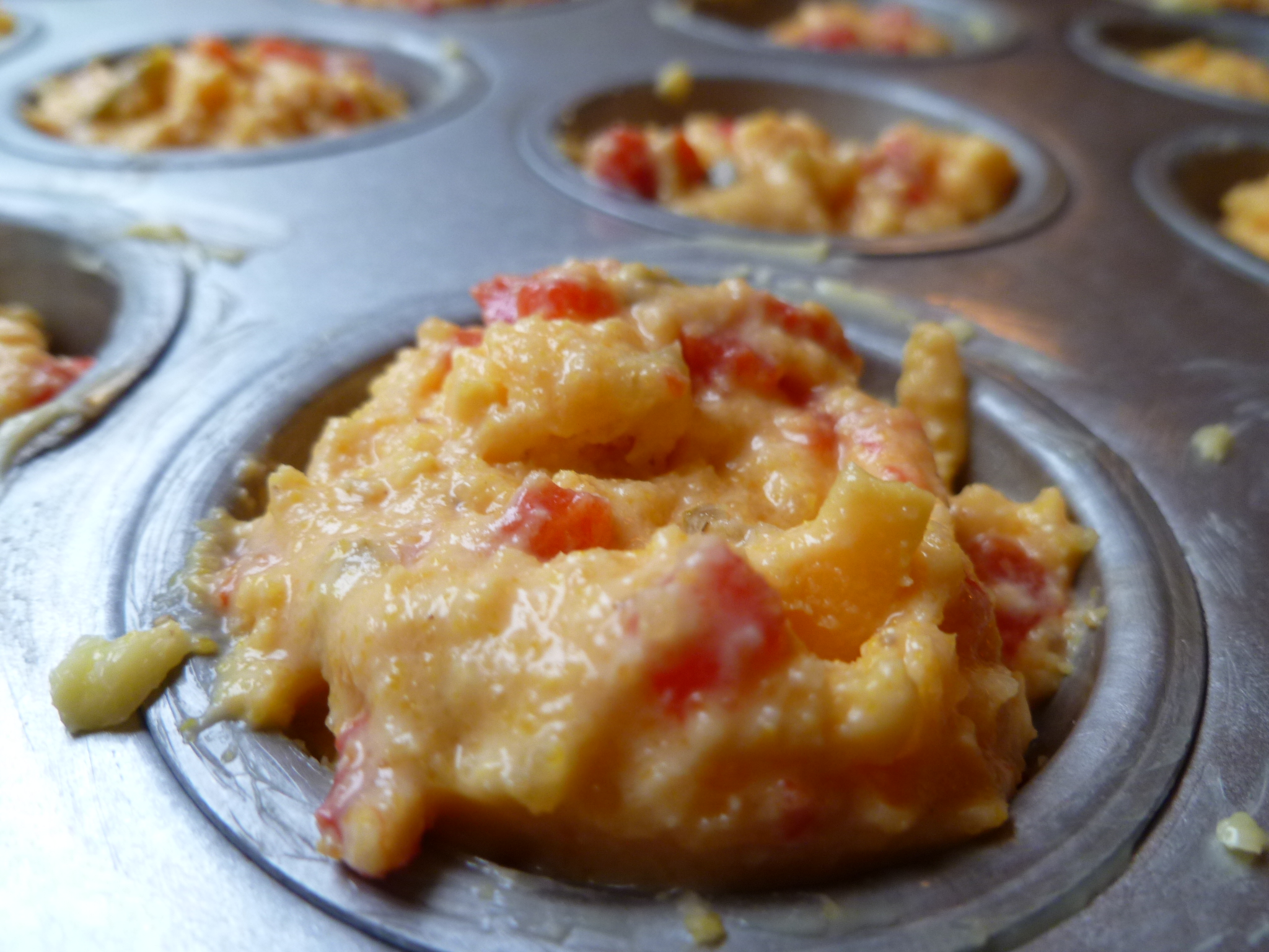 Small Spicy Roasted Pepper Corn Muffins (about 24 small muffins…muffin tin dimensions are given below)