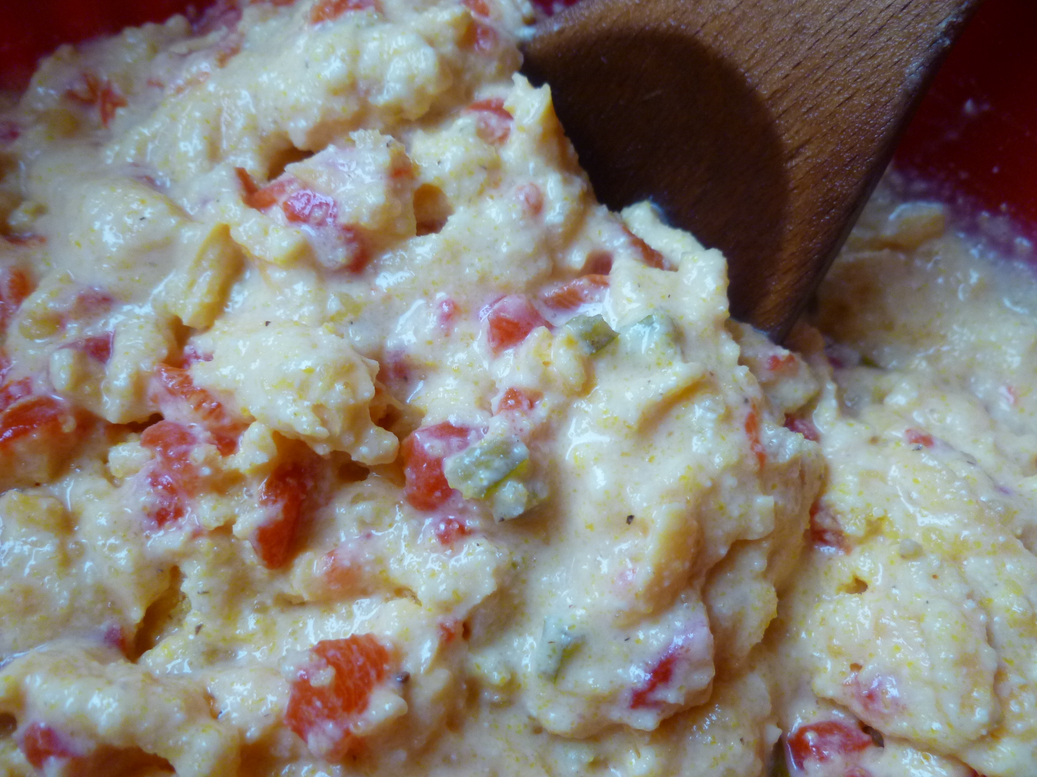 A Note: For A LowCountry Dinner Menu, these muffins are served with the soup and salad. Small Spicy Roasted Pepper Corn Muffins are a successful accompaniment to drinks before dinner, too, or a good addition to a buffet, or a cocktail party. The recipe is adapted from one in Gourmet Magazine (November 1994).