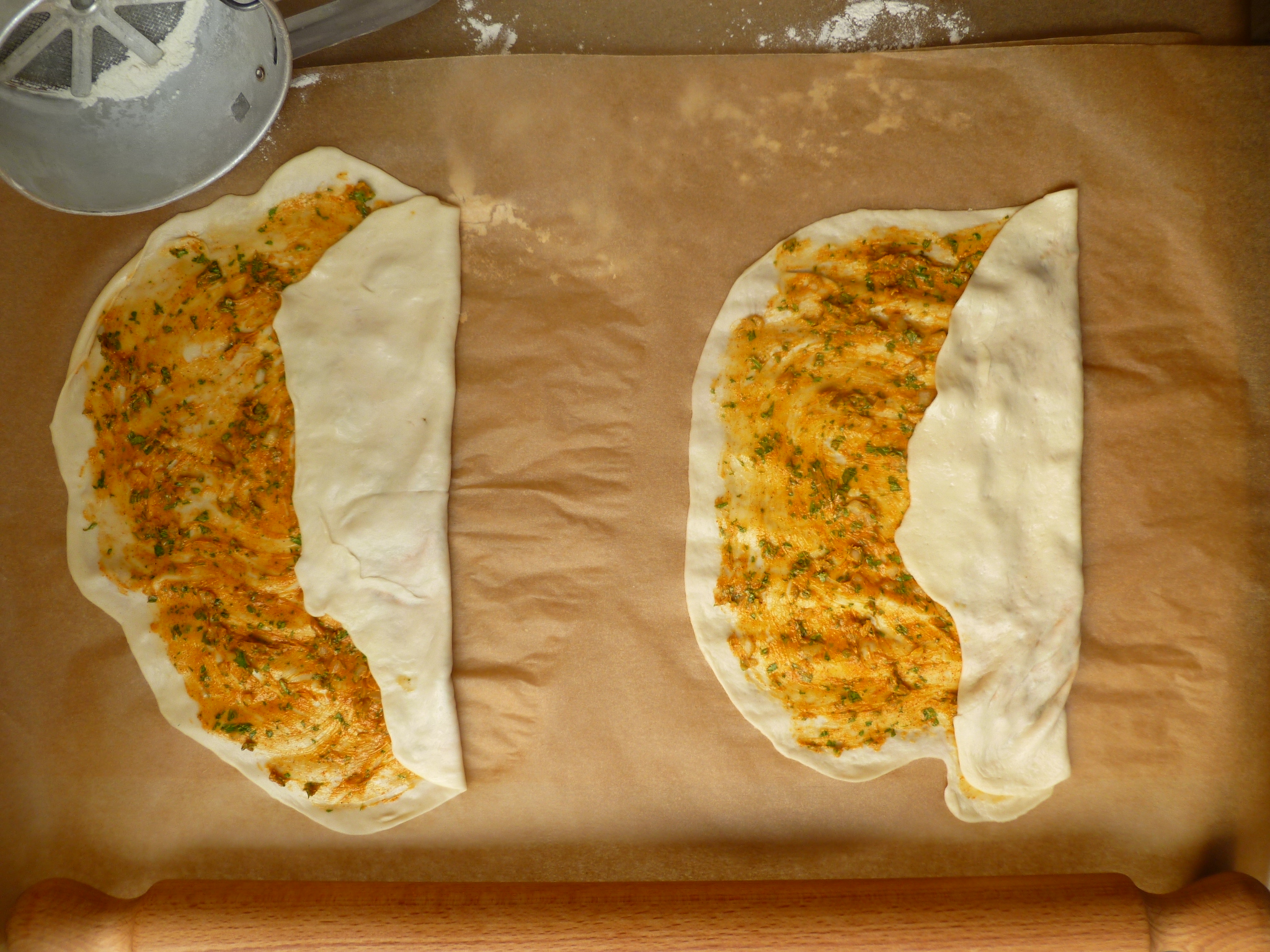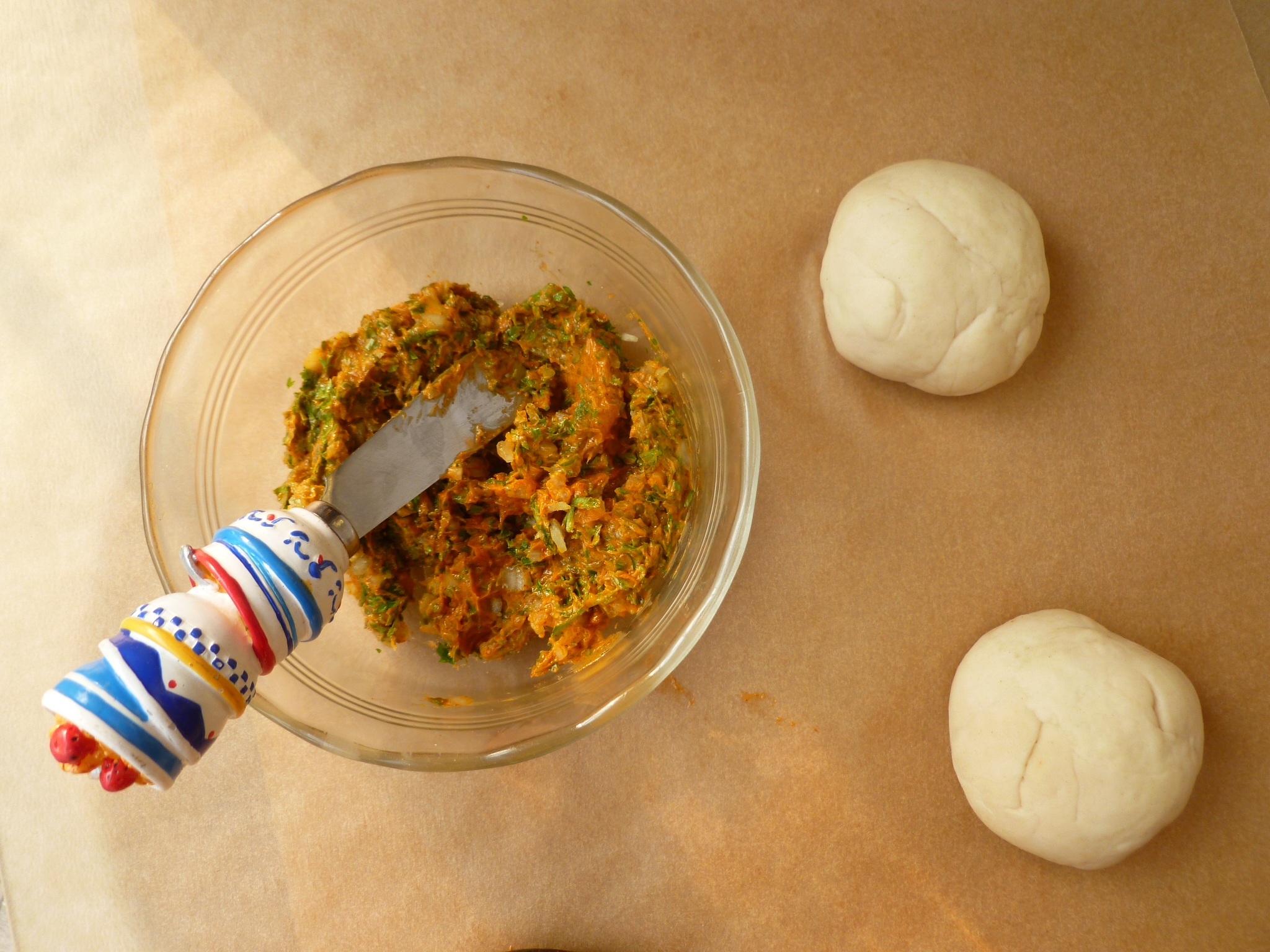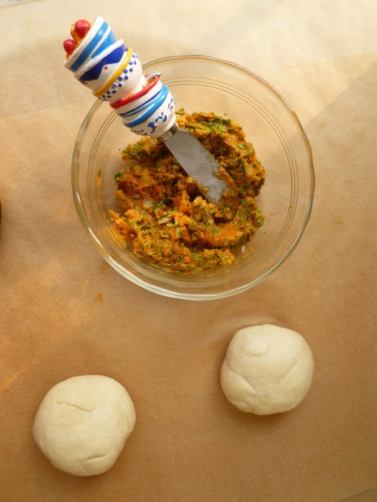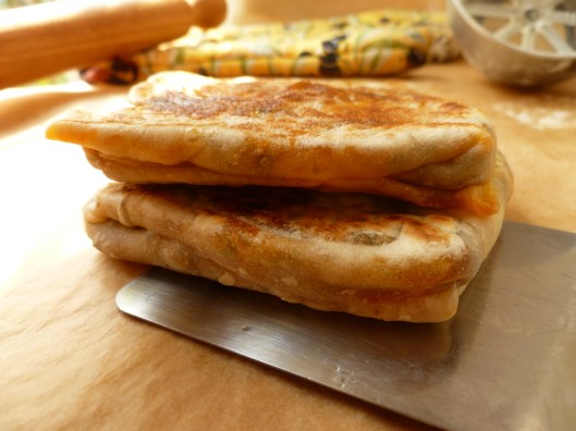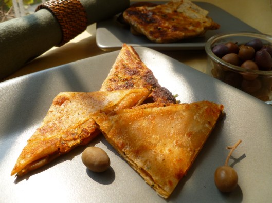 If a recipe describes something one has never tasted or even, perhaps, seen, the essential difficulty of it may not lie in performing the steps, but in visualizing the end result. Making Moroccan flatbread might fall into this category for some cooks. It is not a difficult bread; it is even a quick one once you become familiar with its ways. But if it is a flatbread that has never crossed your path, a visual guide helps give you an idea of what you are aiming for…which is, an excellent little layered bread with a savoury filling.