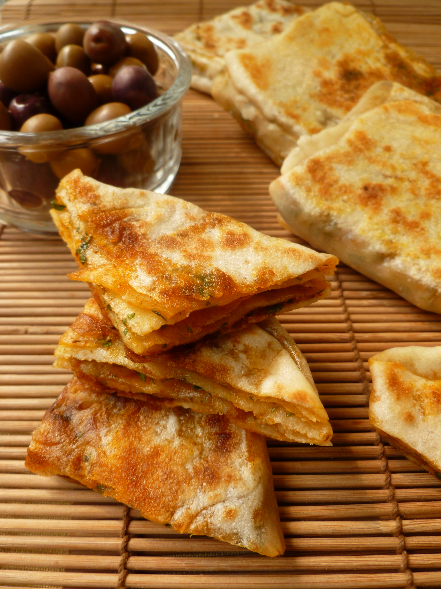Anissa Helou, breads with fillings, layered flatbread, Moroccan bread recipes, North African recipes, picnic recipes, quick bread recipes, R'ghayef