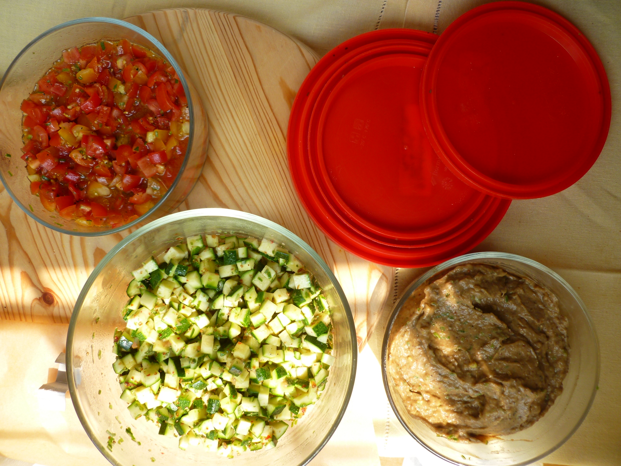 eggplant recipes, Marinated courgettes, marinated tomatoes, marinated vegetable salad, marinated zucchini, ratatouille salad, salad verrines