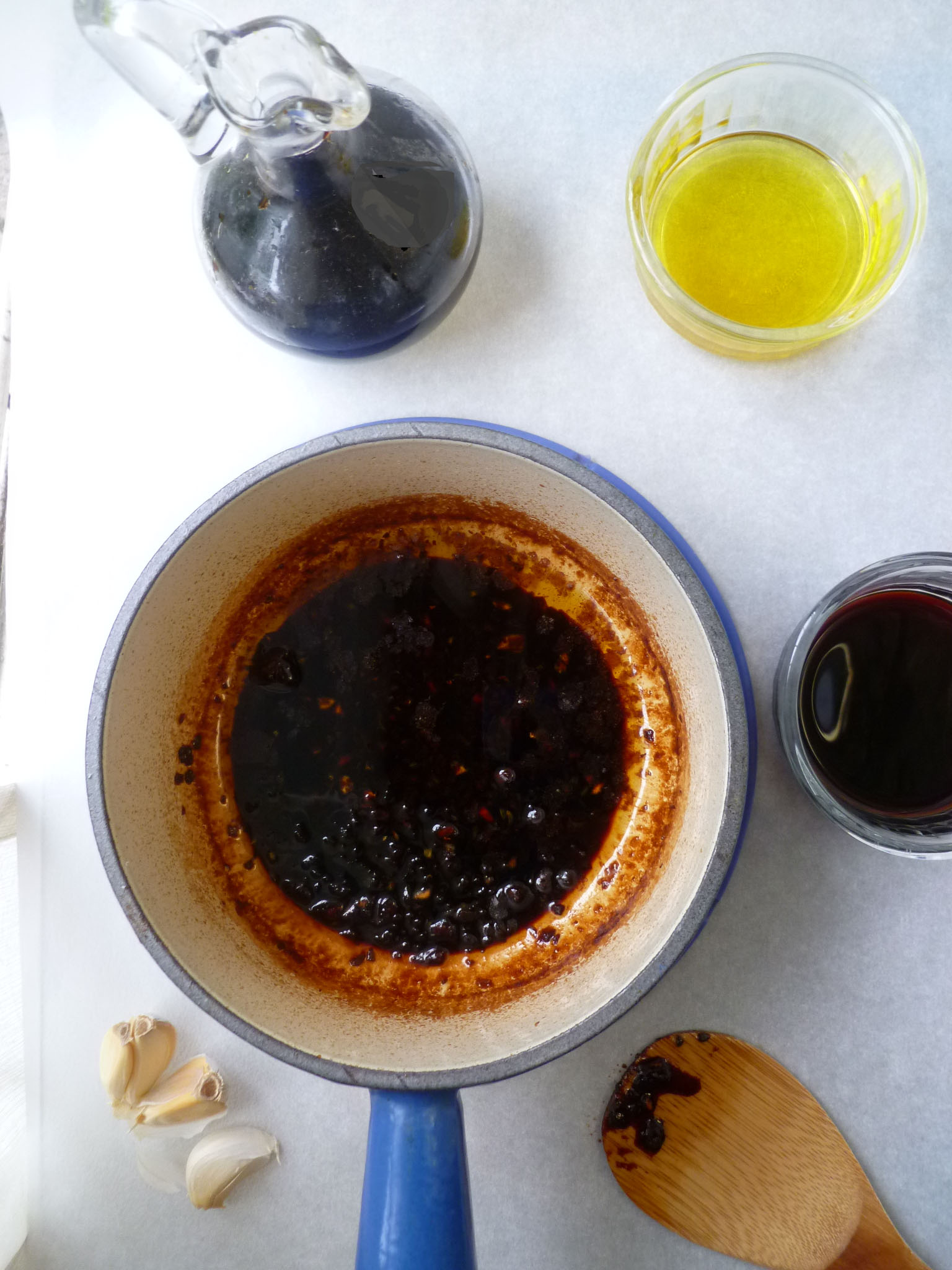 - a heavy-bottomed Pot for making the balsamic sauce reduction and reheating the beans in it