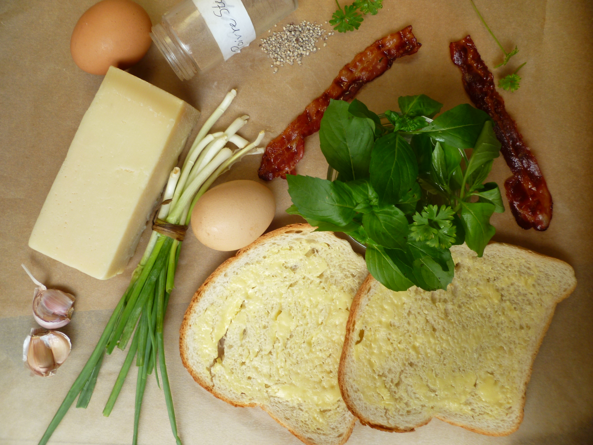 Ingredients for Toast Points and Garnishing the Eggs Carbonara :