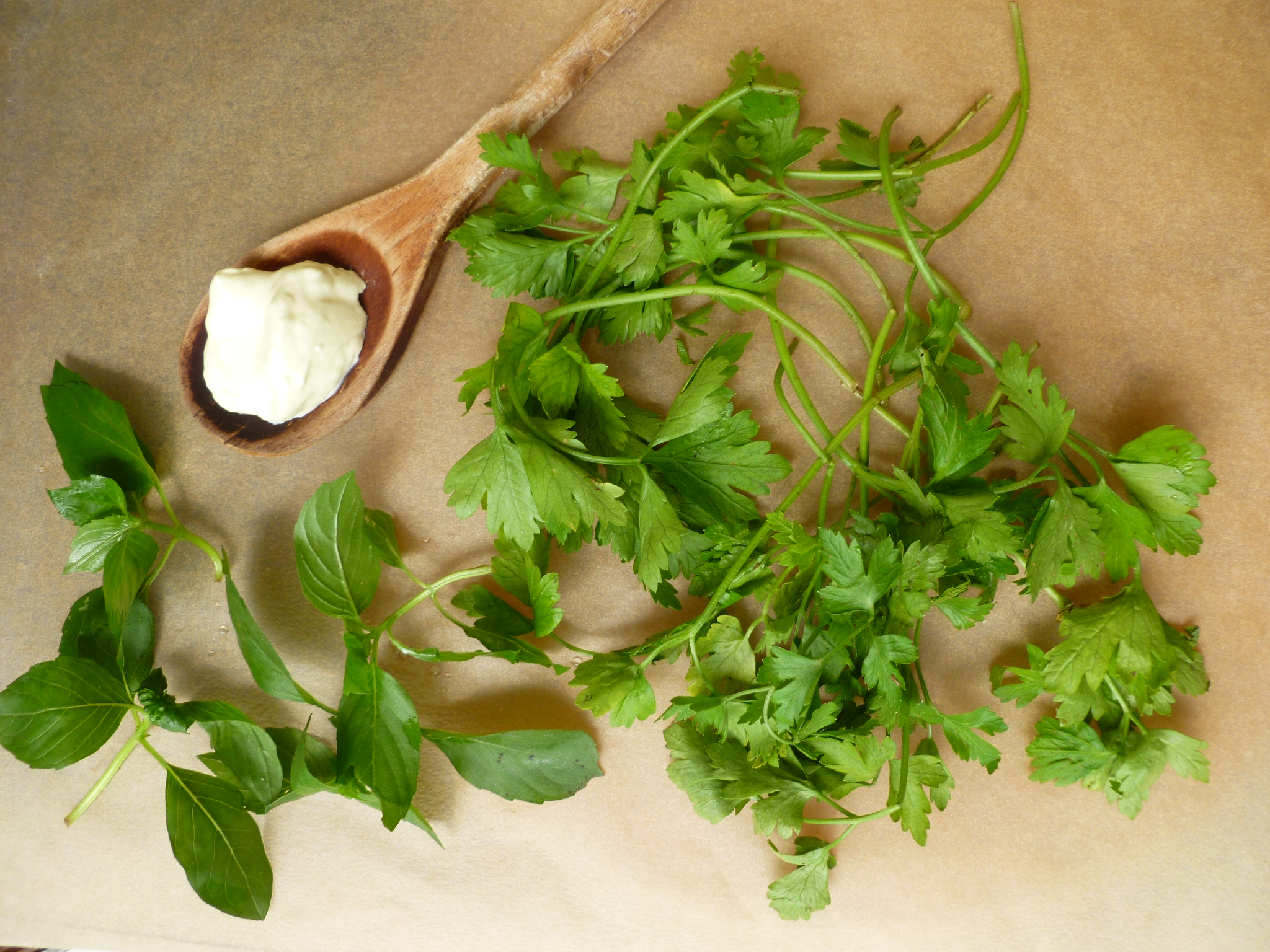 - 2 Tablespoons of fresh Basil, cut in small pieces with scissors (1 Tablespoon of fresh Basil, cut in small pieces with scissors)
