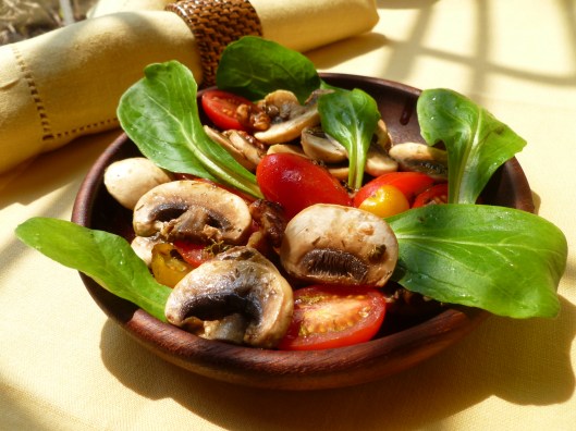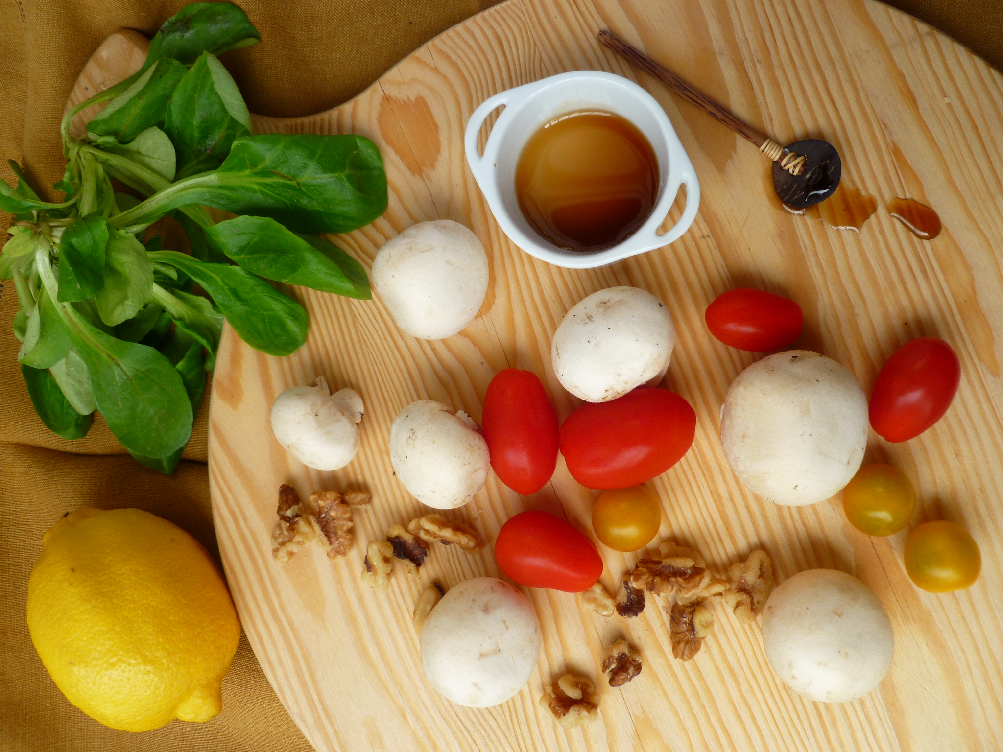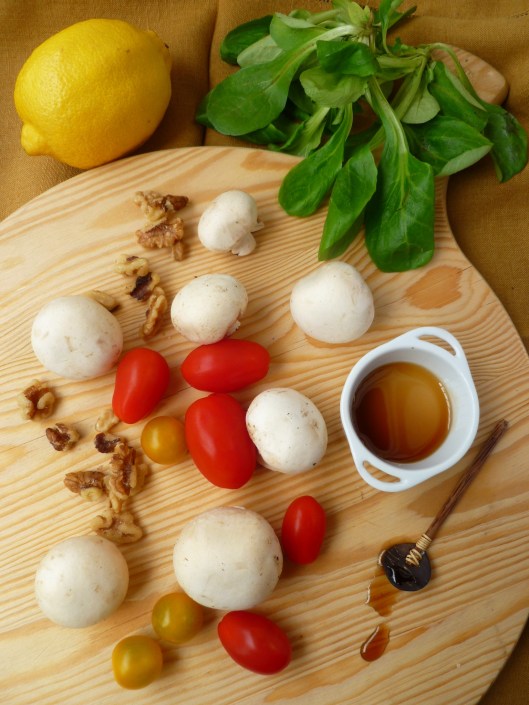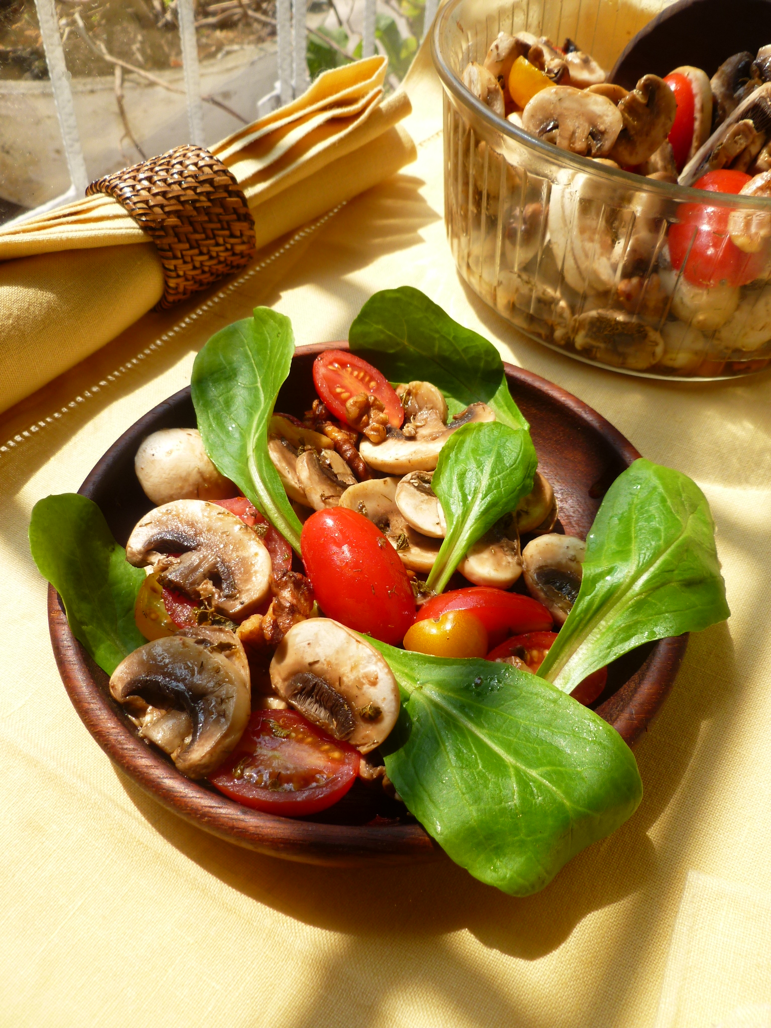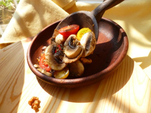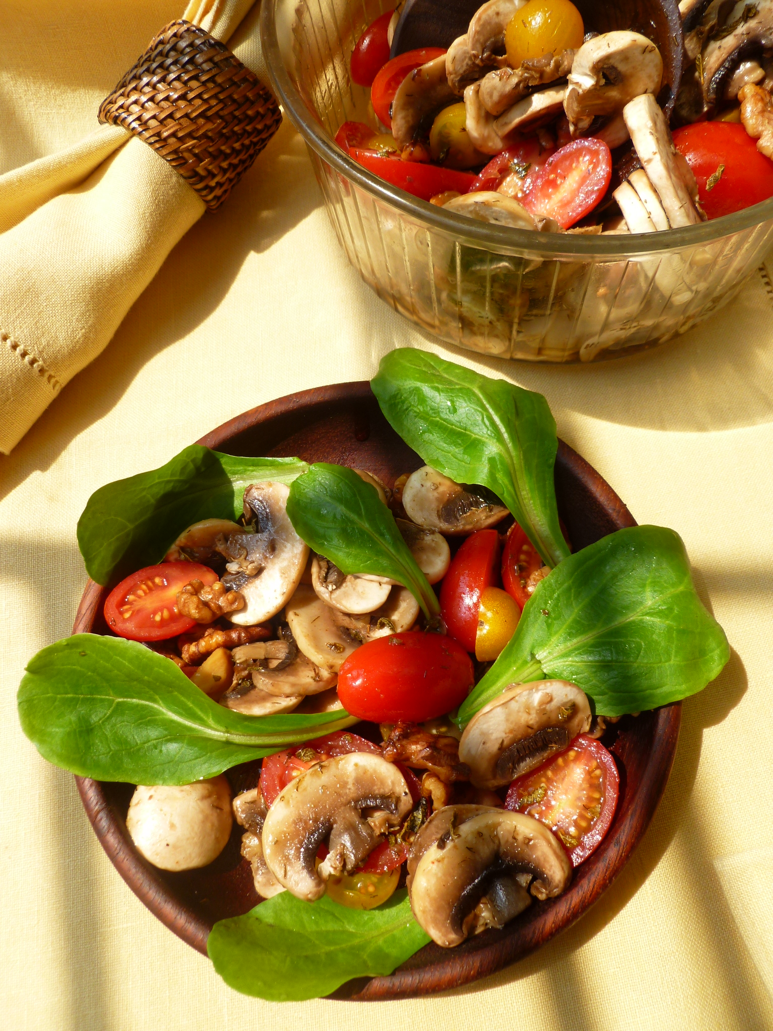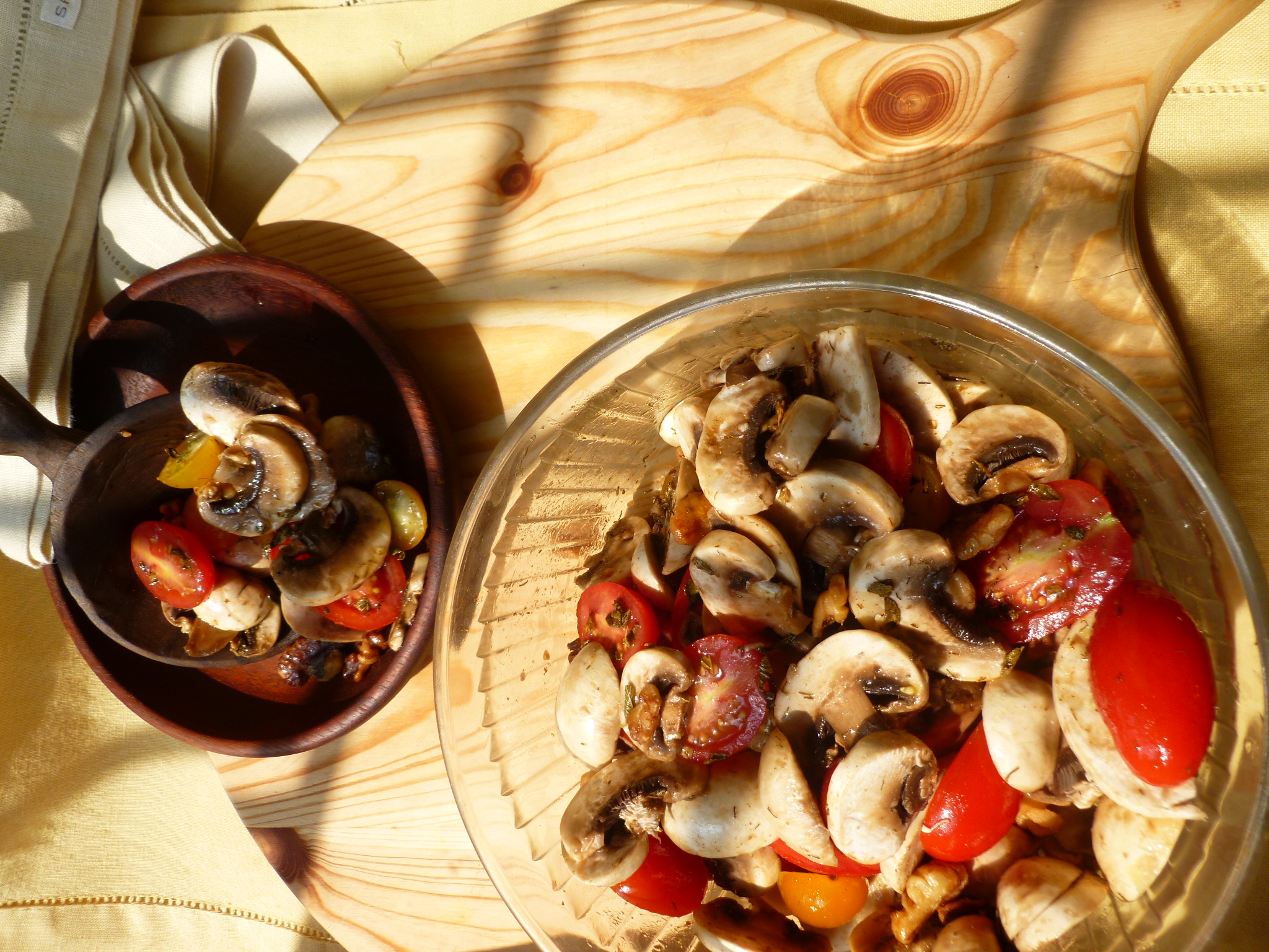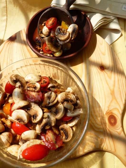 Salad of Marinated Mushrooms, Red Grape,Yellow and Red Cherry Tomatoes and Toasted Walnuts (for 6 people)