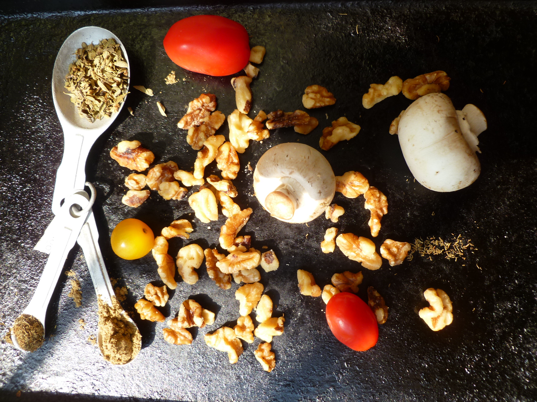 4. Stir the walnuts into the mushrooms and tomaotes. Divide the salad among plates…