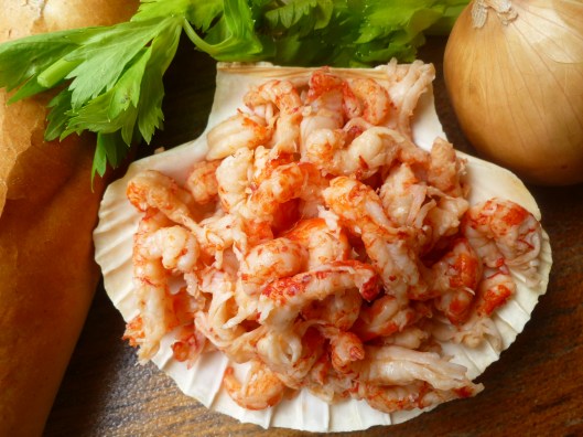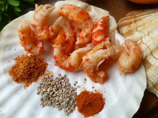 - a bag of cheap, coarse-grained Sea Salt is useful for sprinkling on baking pans to hold the scallop shells in place as they bake: a photo and description of this type of salt is here in a previous dk post. For baking the crayfish in gratin dishes, salt is unnecessary.