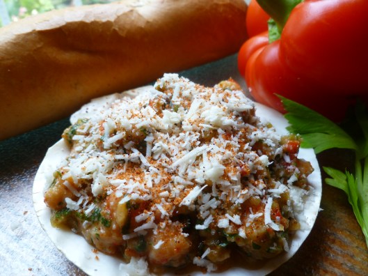 - 1 and 1/2 pounds of Crayfish Tails, boiled, shelled and cleaned, plus 16 additional Crayfish Tails to garnish the baked Cajun Crayfish (2 for each shell or gratin dish)