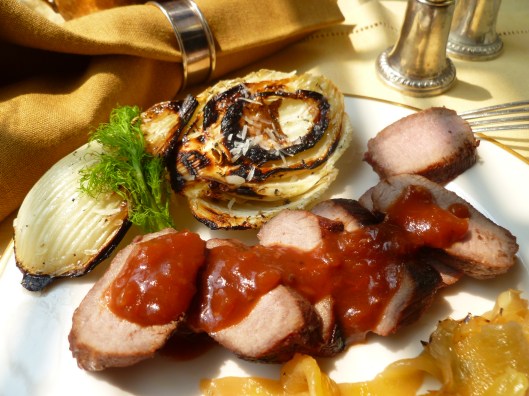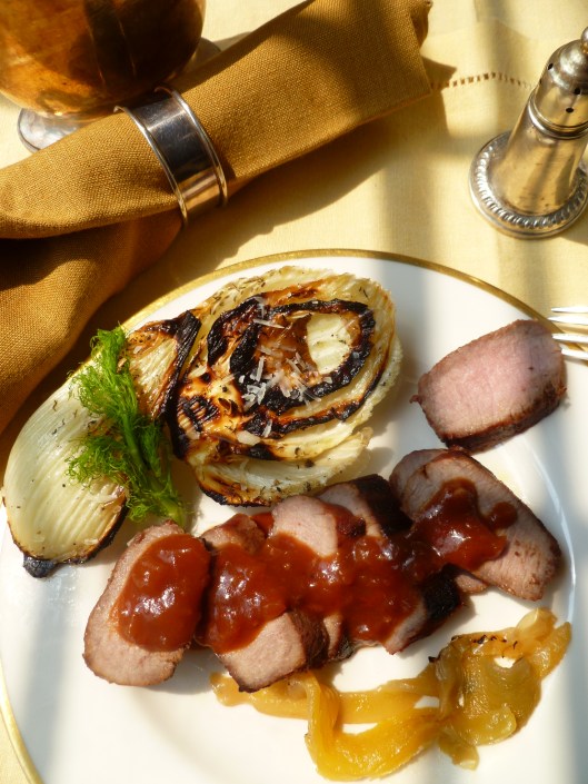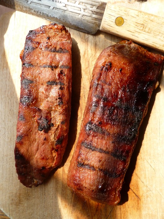 4. When the coals are ready (or when the stovetop grill is very hot) place the loins on the rack and grill them on the first side for 4 minutes with the grill cover closed.